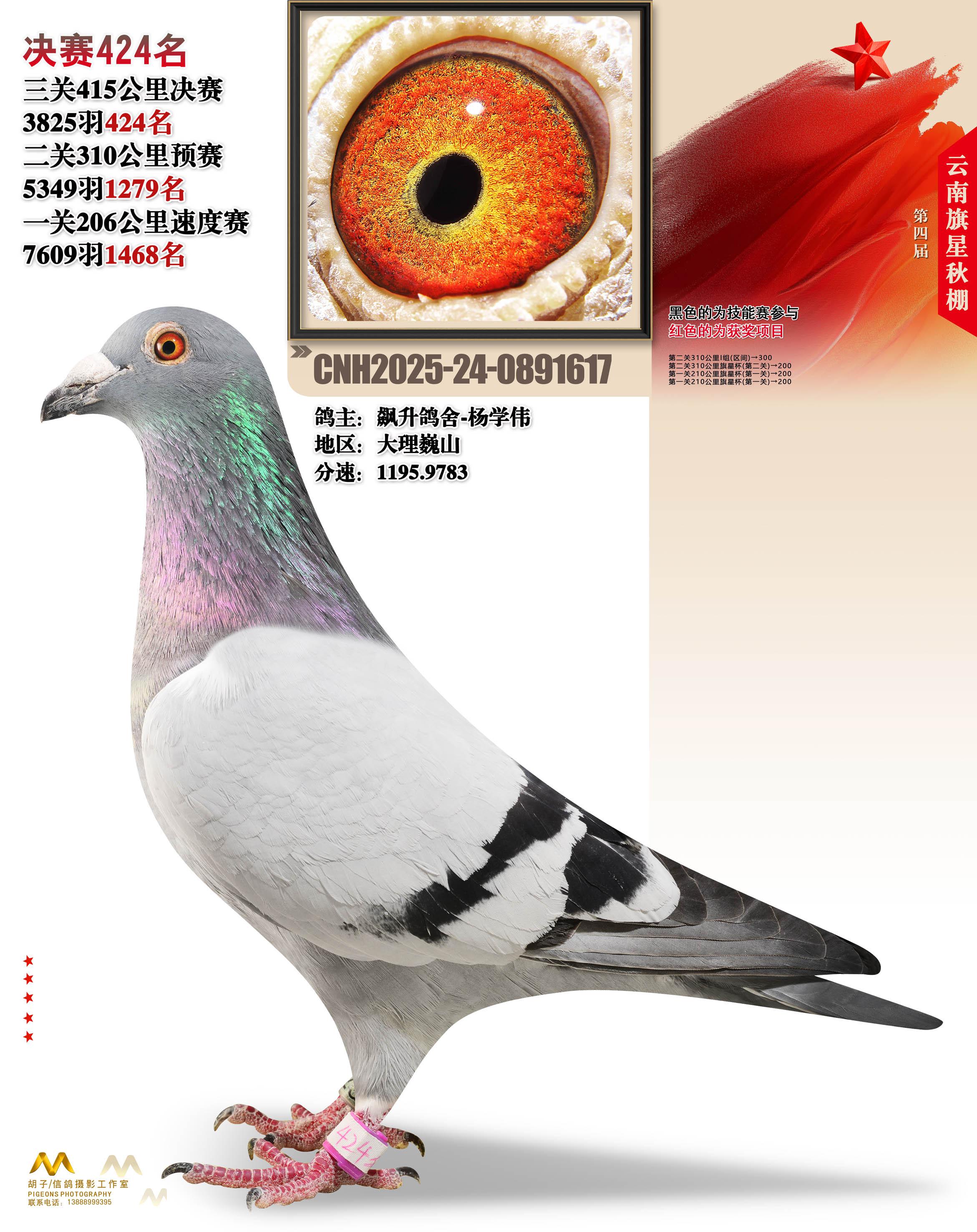 位置:云南大理旗星赛鸽中心2025获奖鸽展示\决赛424名