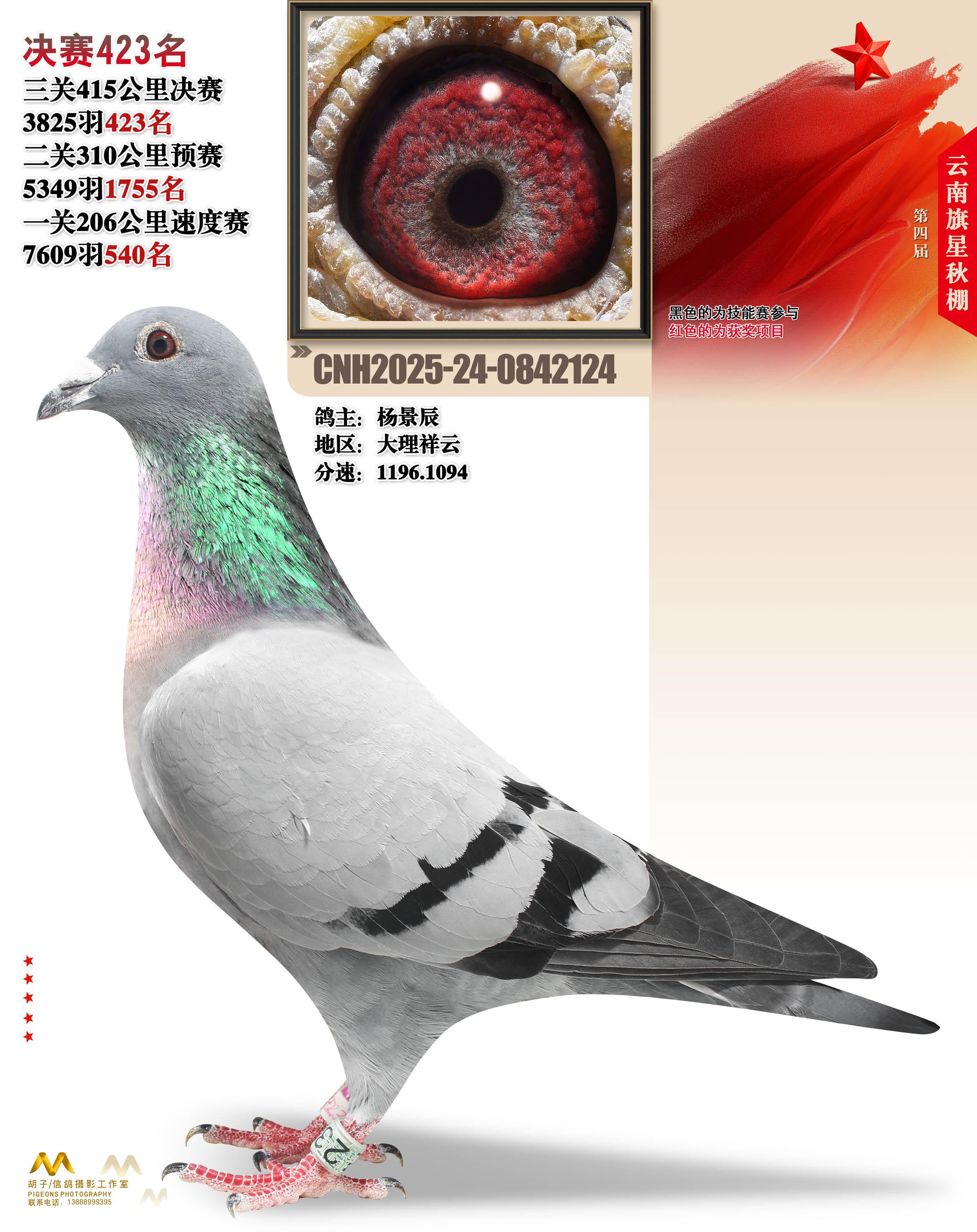 位置:云南大理旗星赛鸽中心2025获奖鸽展示\决赛423名