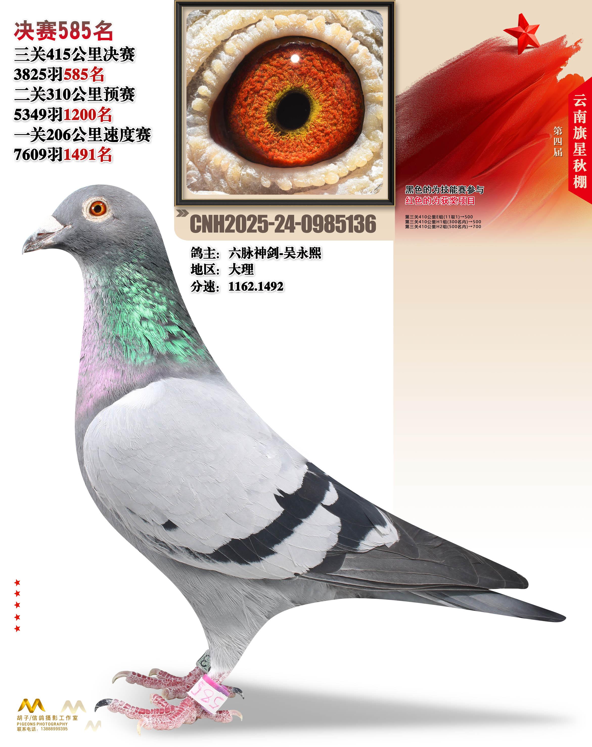 位置:云南大理旗星赛鸽中心2025获奖鸽展示\决赛585名