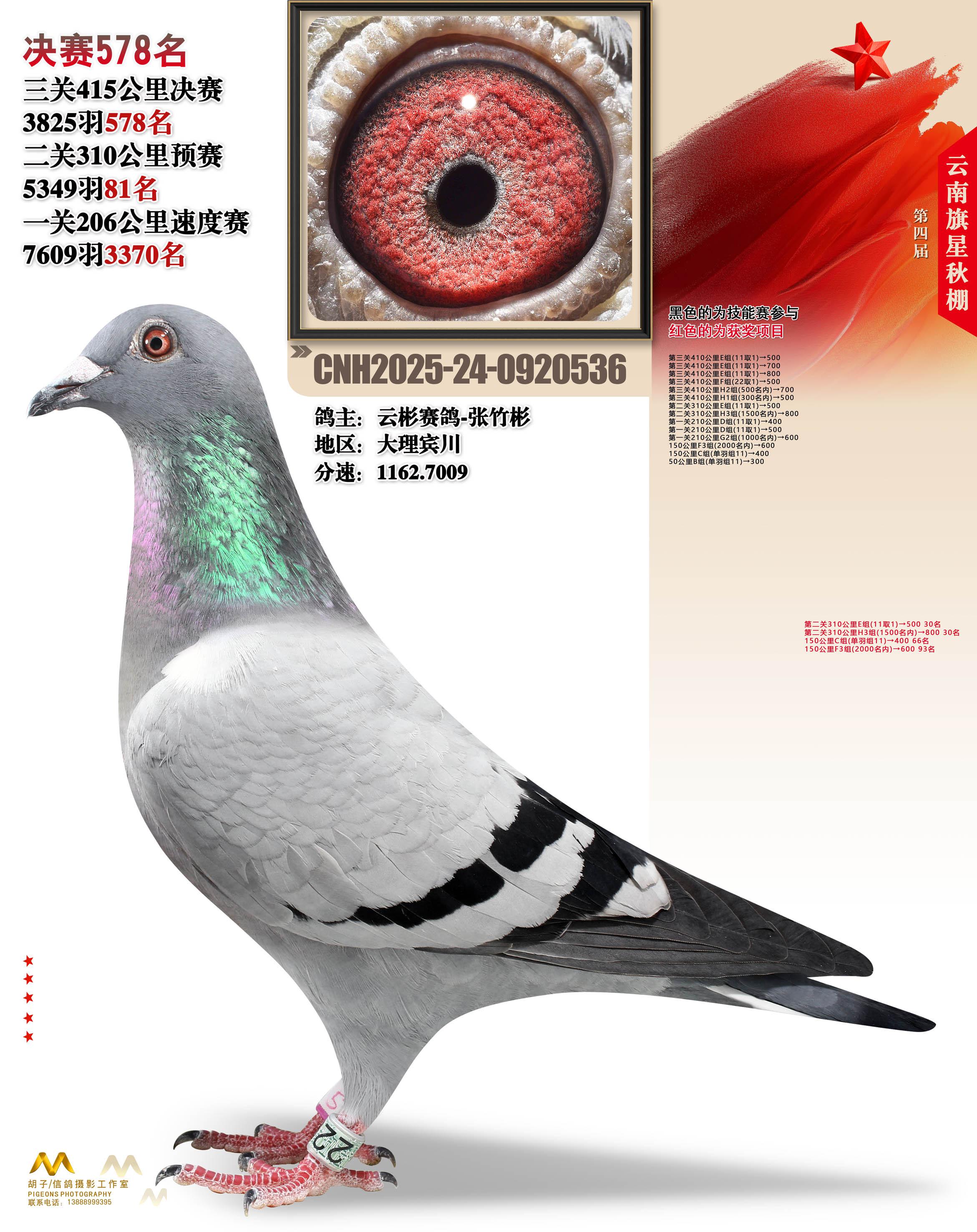 位置:云南大理旗星赛鸽中心2025获奖鸽展示\决赛578名
