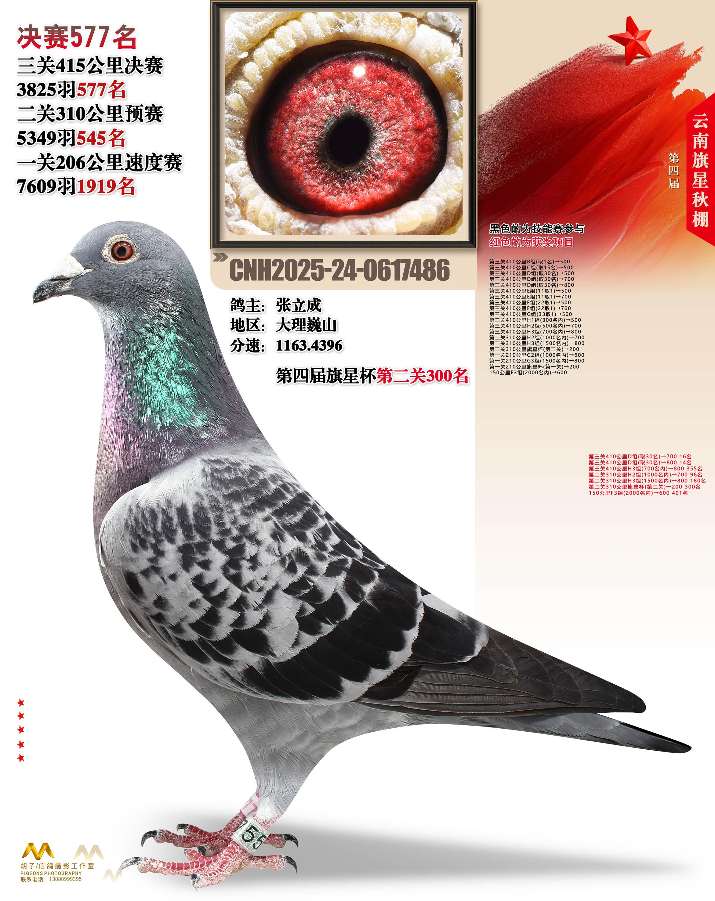 位置:云南大理旗星赛鸽中心2025获奖鸽展示\决赛577名