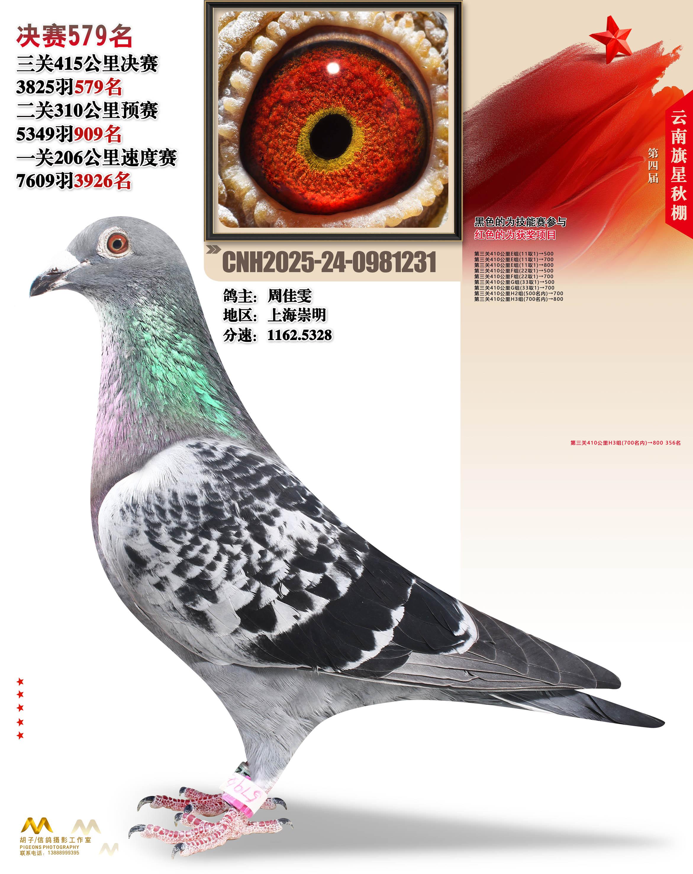 位置:云南大理旗星赛鸽中心2025获奖鸽展示\决赛579名