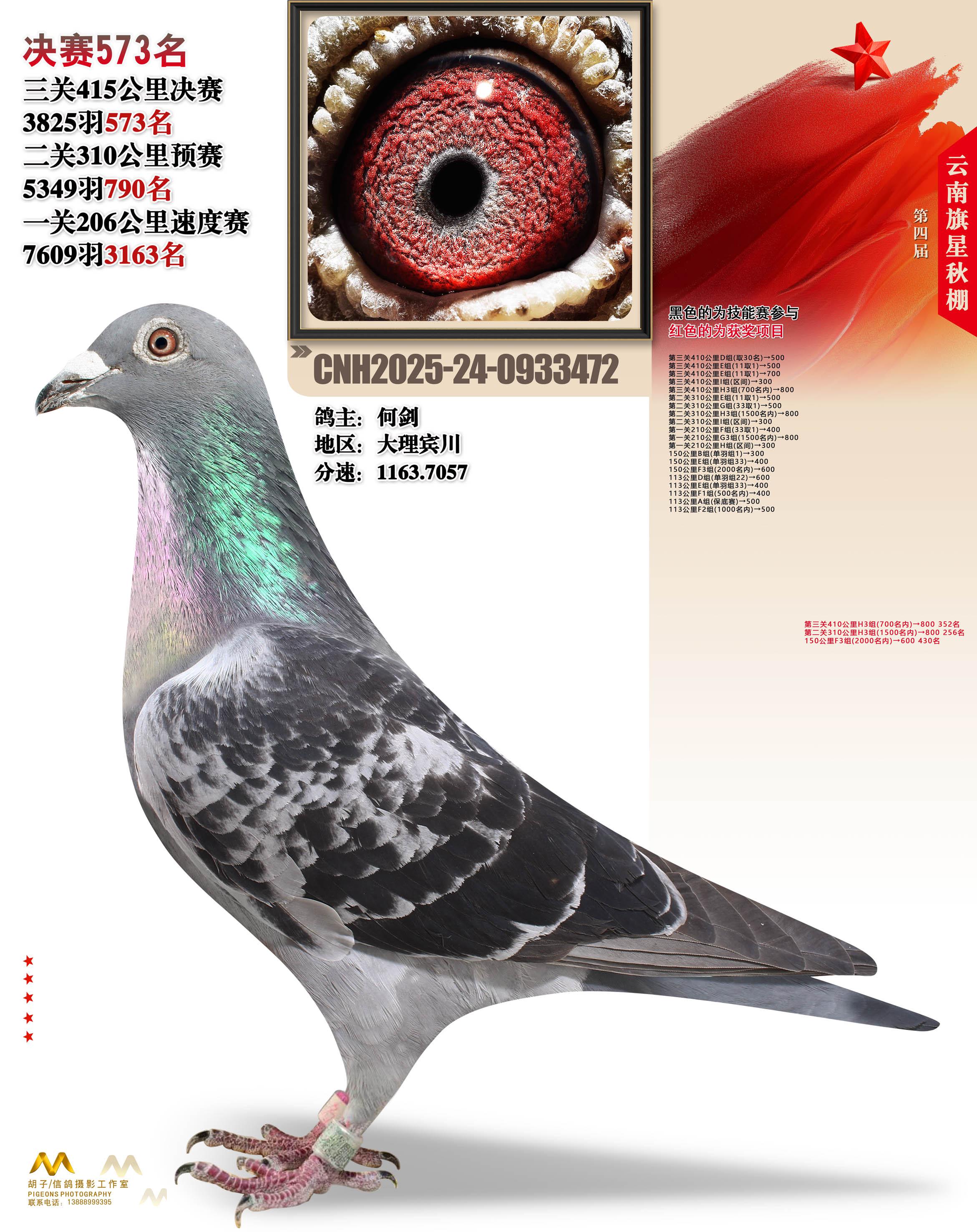 位置:云南大理旗星赛鸽中心2025获奖鸽展示\决赛573名