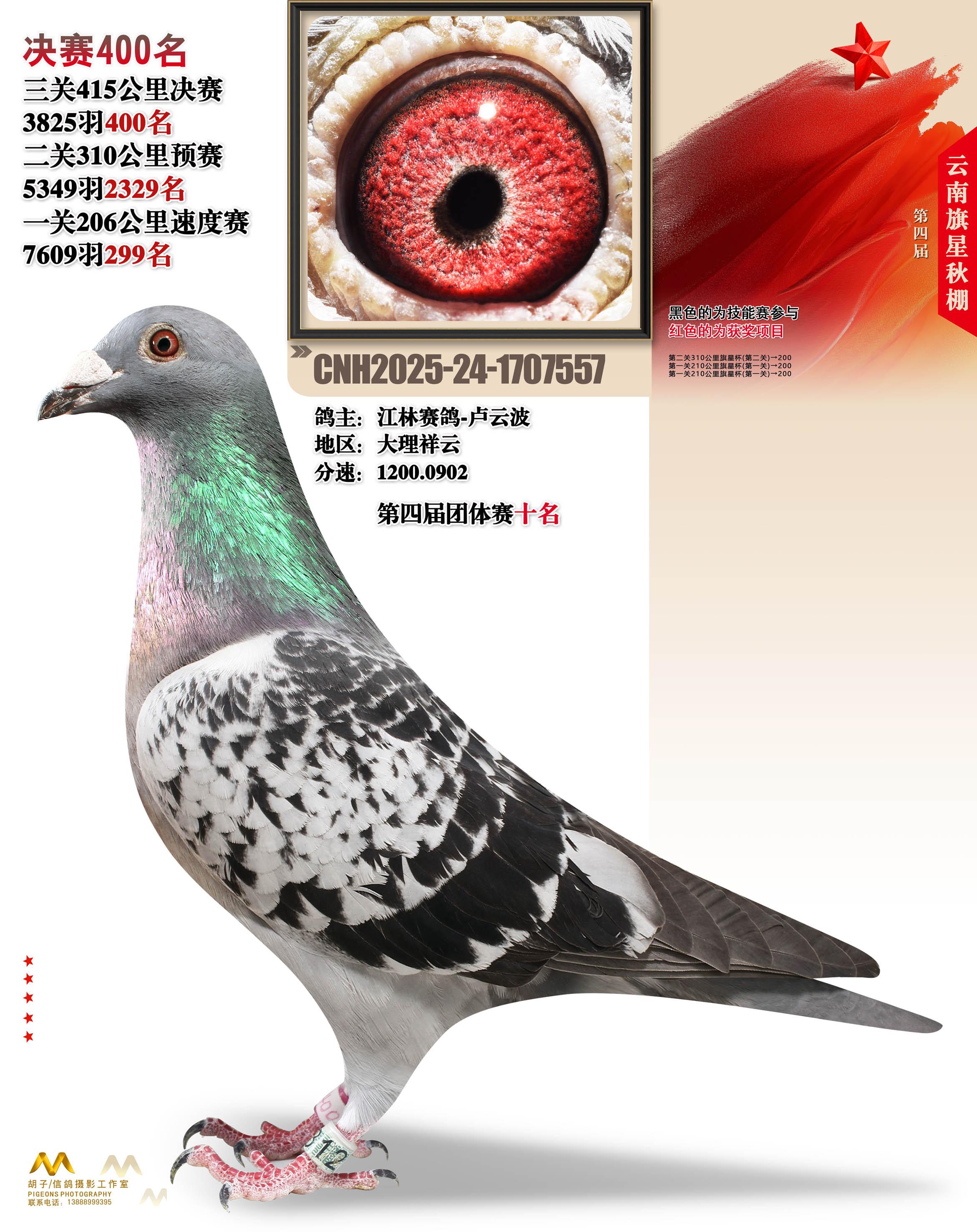 位置:云南大理旗星赛鸽中心2025获奖鸽展示\决赛400名