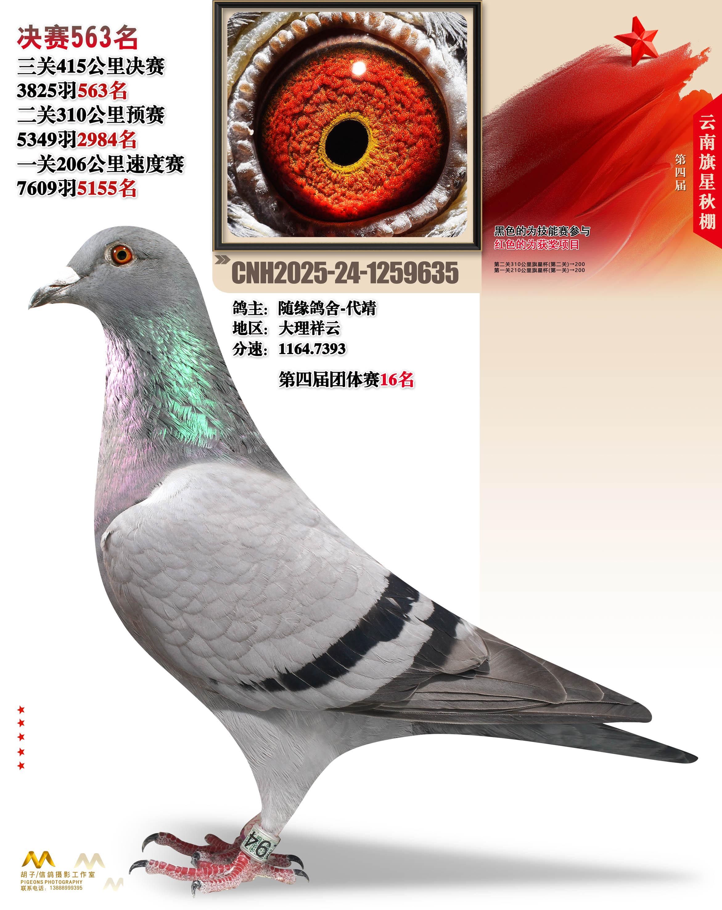 位置:云南大理旗星赛鸽中心2025获奖鸽展示\决赛563名