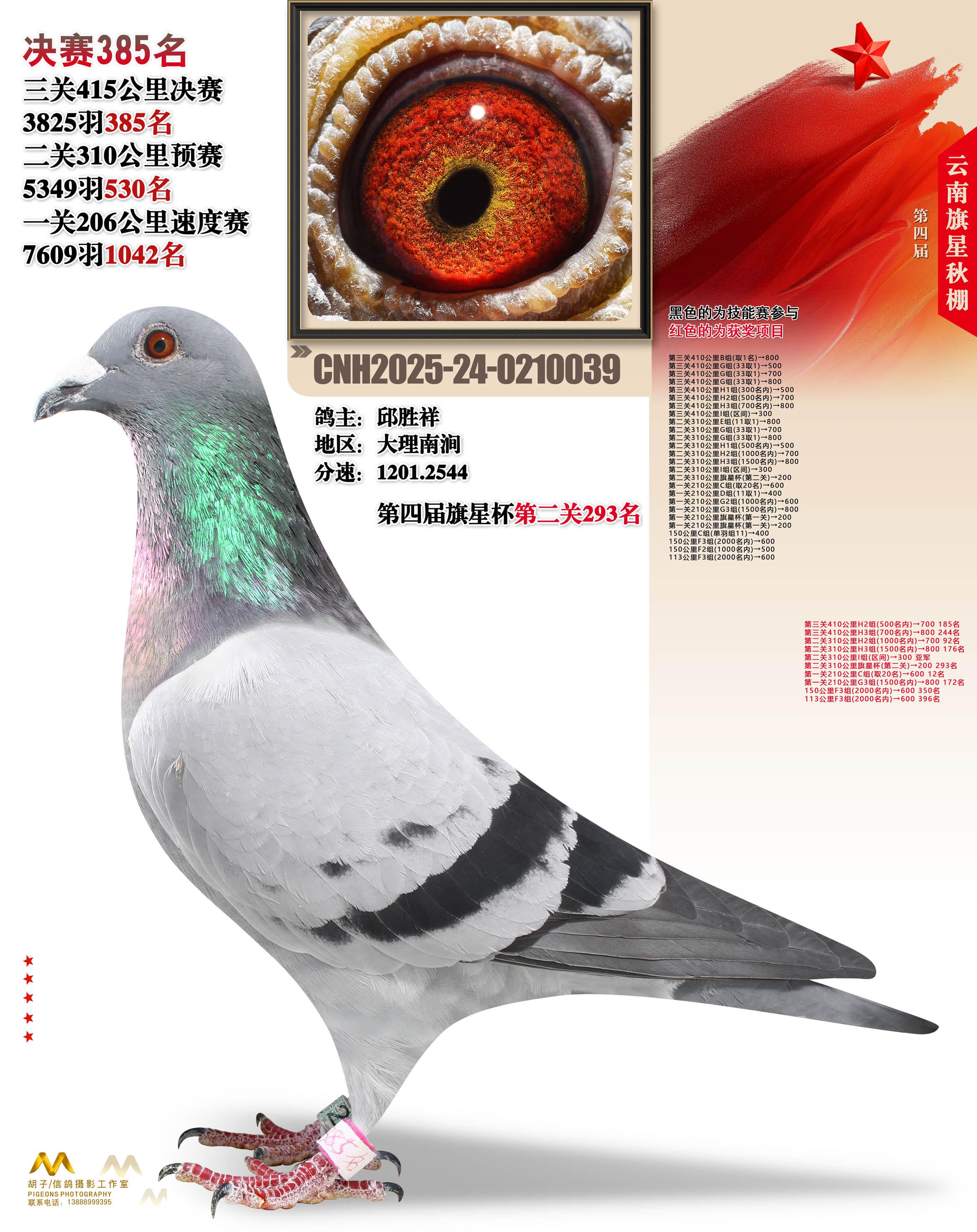 位置:云南大理旗星赛鸽中心2025获奖鸽展示\决赛385名