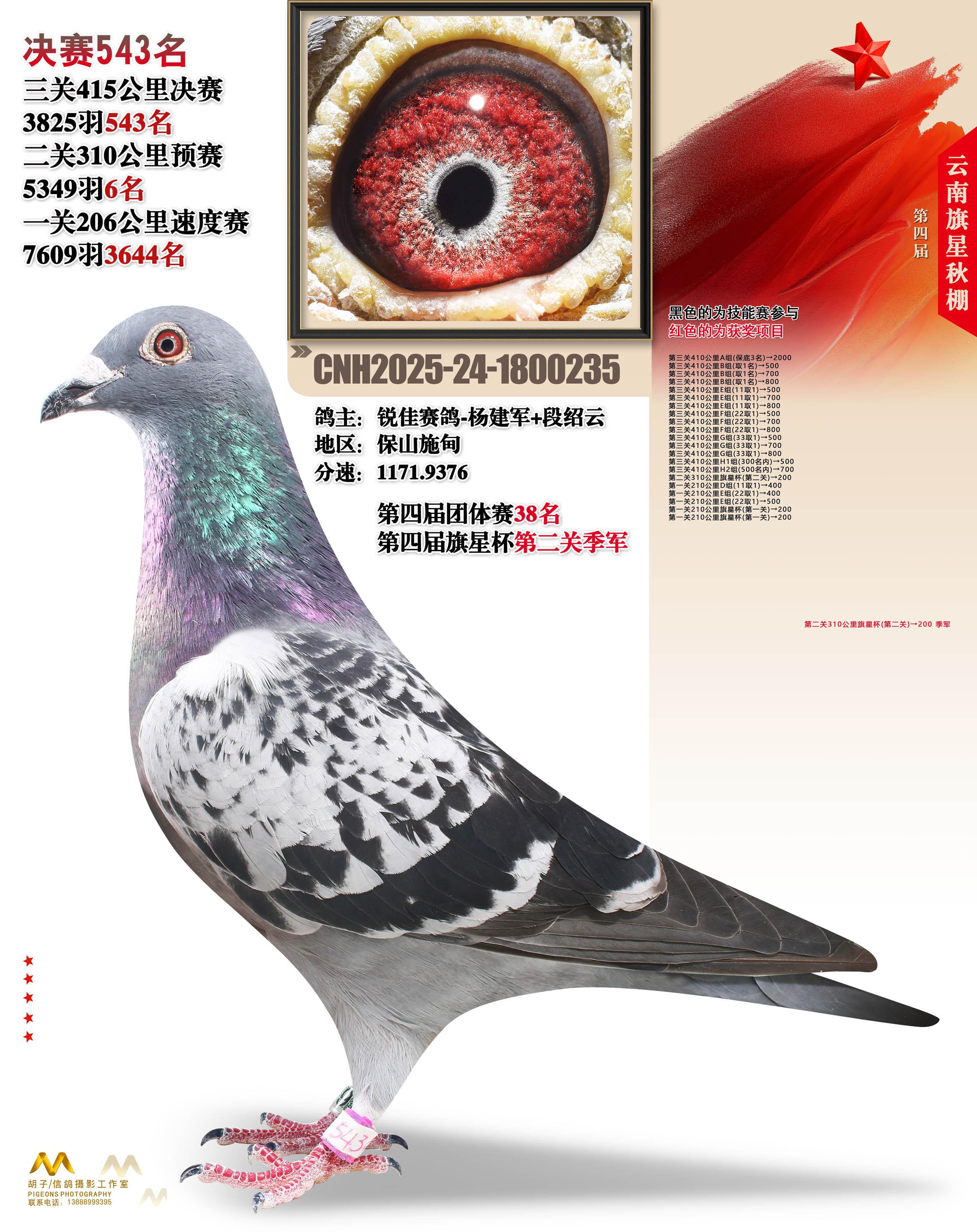 位置:云南大理旗星赛鸽中心2025获奖鸽展示\决赛543名