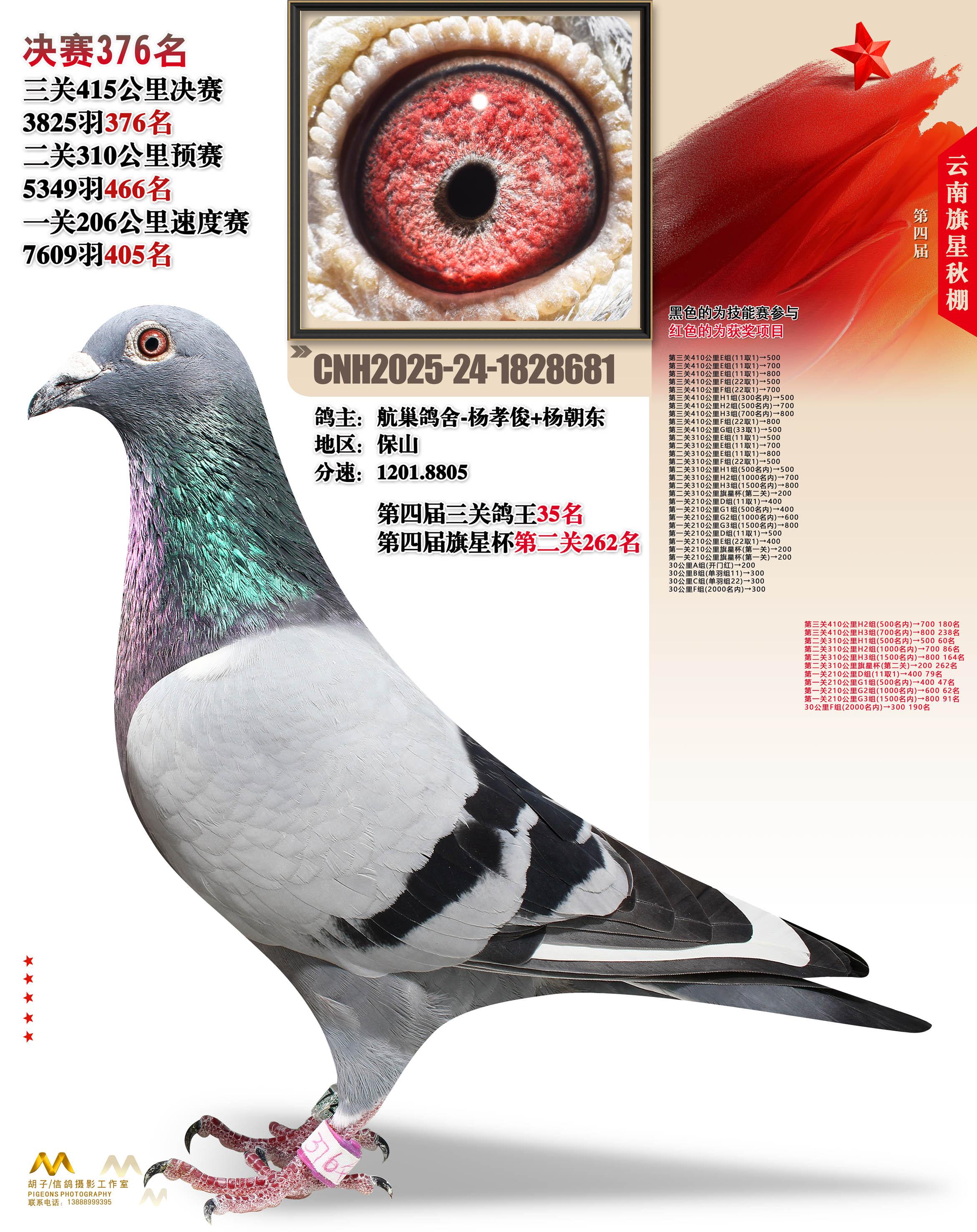 位置:云南大理旗星赛鸽中心2025获奖鸽展示\决赛376名