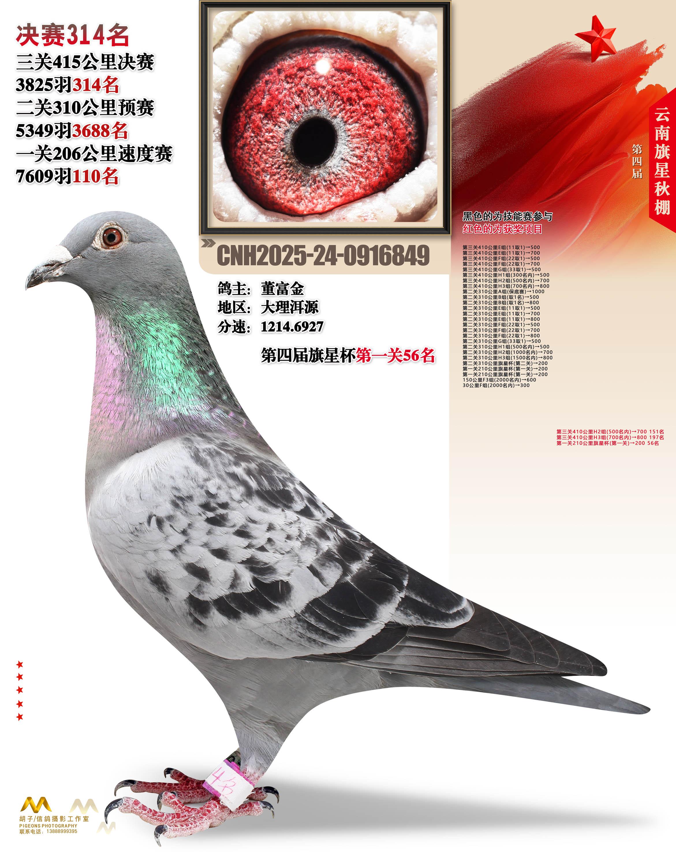 位置:云南大理旗星赛鸽中心2025获奖鸽展示\决赛314名