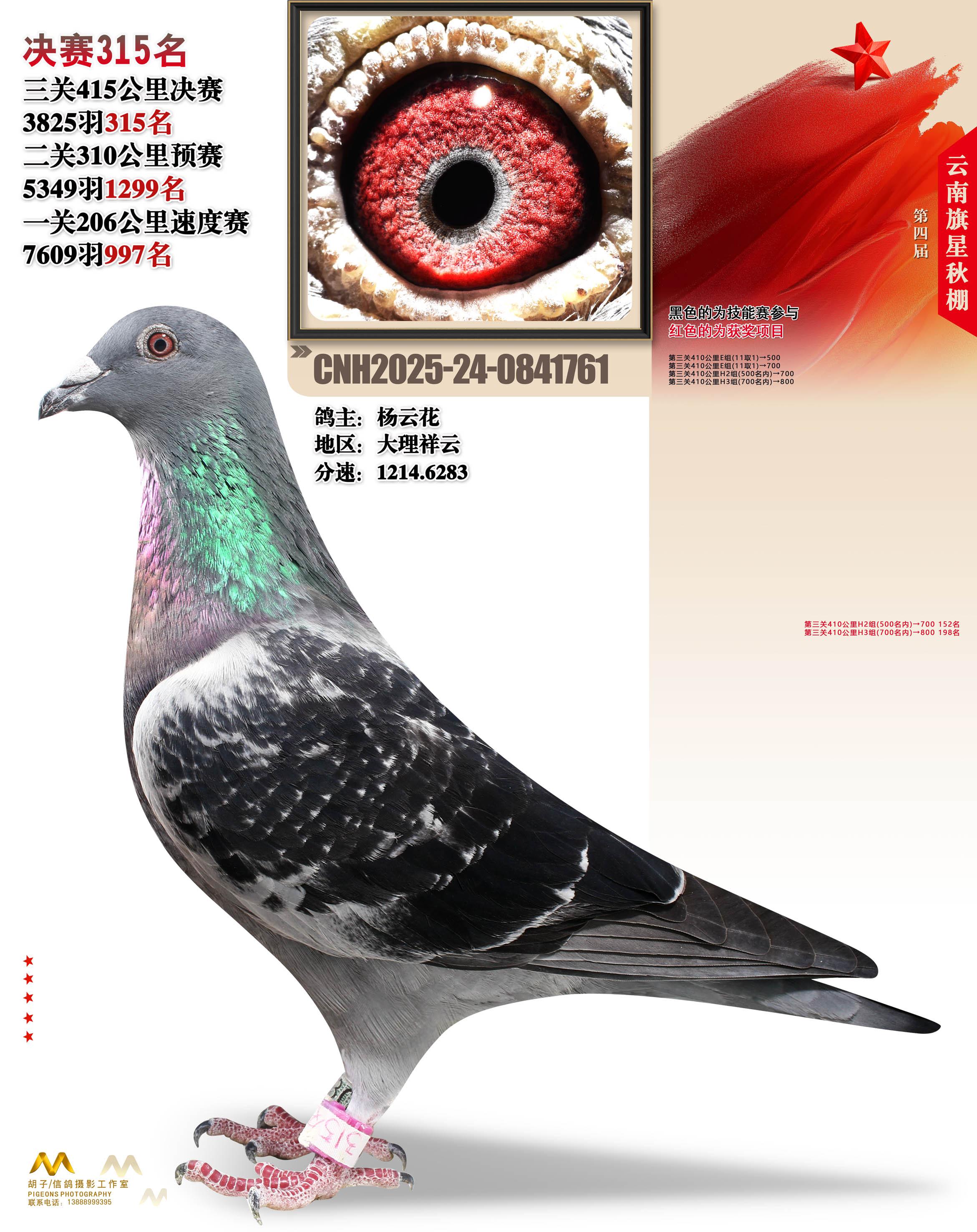 位置:云南大理旗星赛鸽中心2025获奖鸽展示\决赛315名
