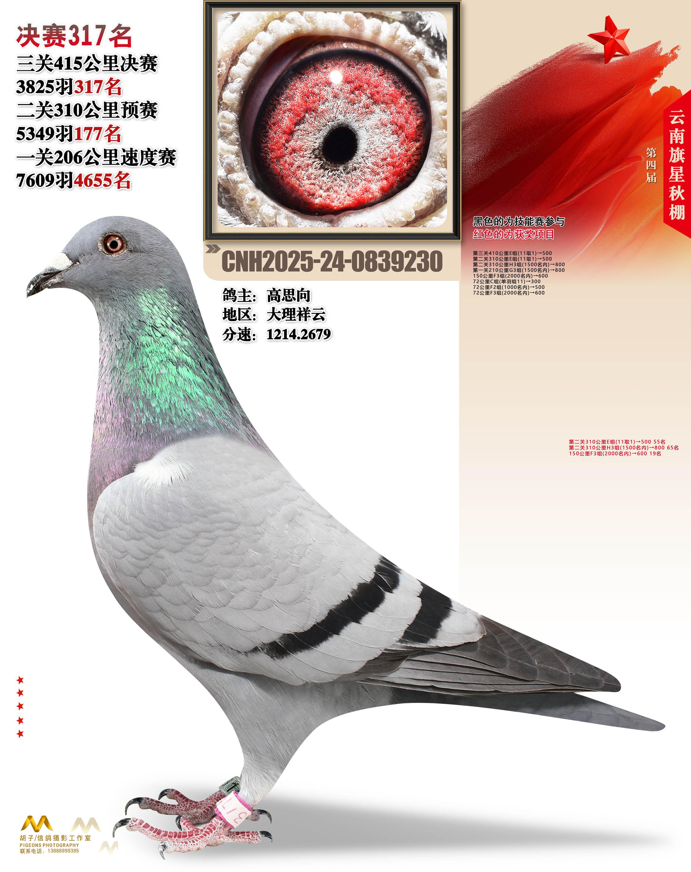 位置:云南大理旗星赛鸽中心2025获奖鸽展示\决赛317名