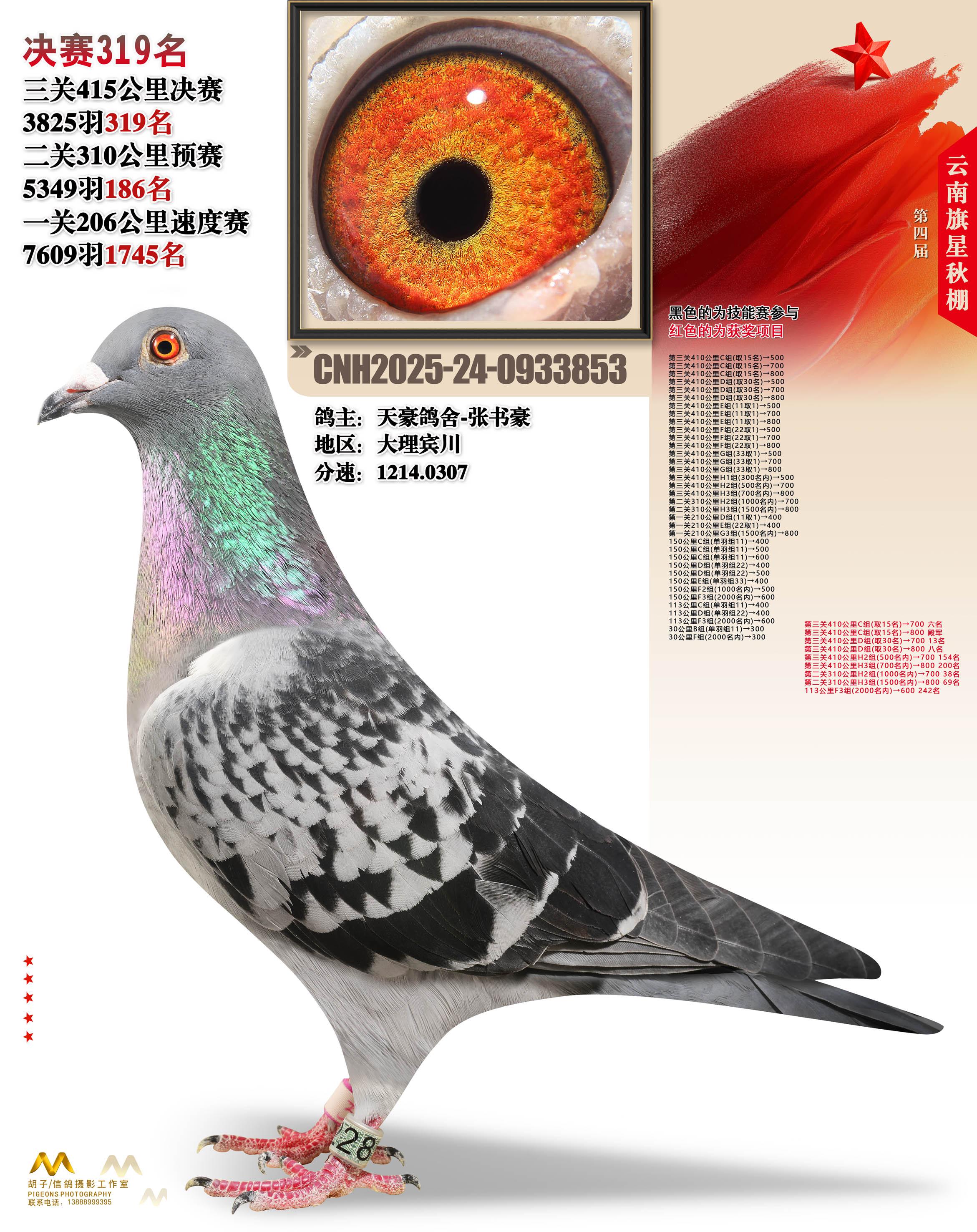 位置:云南大理旗星赛鸽中心2025获奖鸽展示\决赛319名