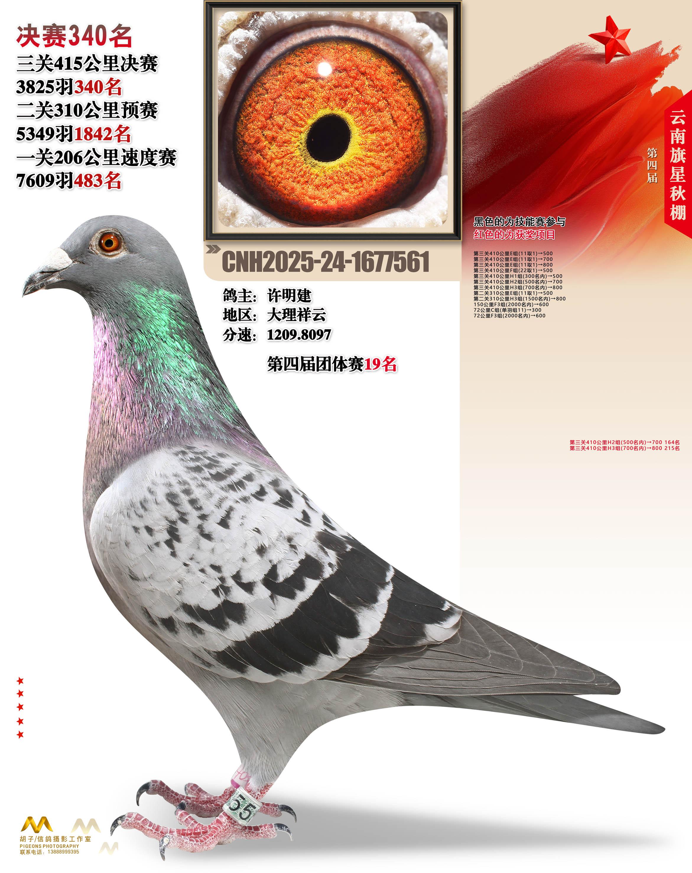 位置:云南大理旗星赛鸽中心2025获奖鸽展示\决赛340名