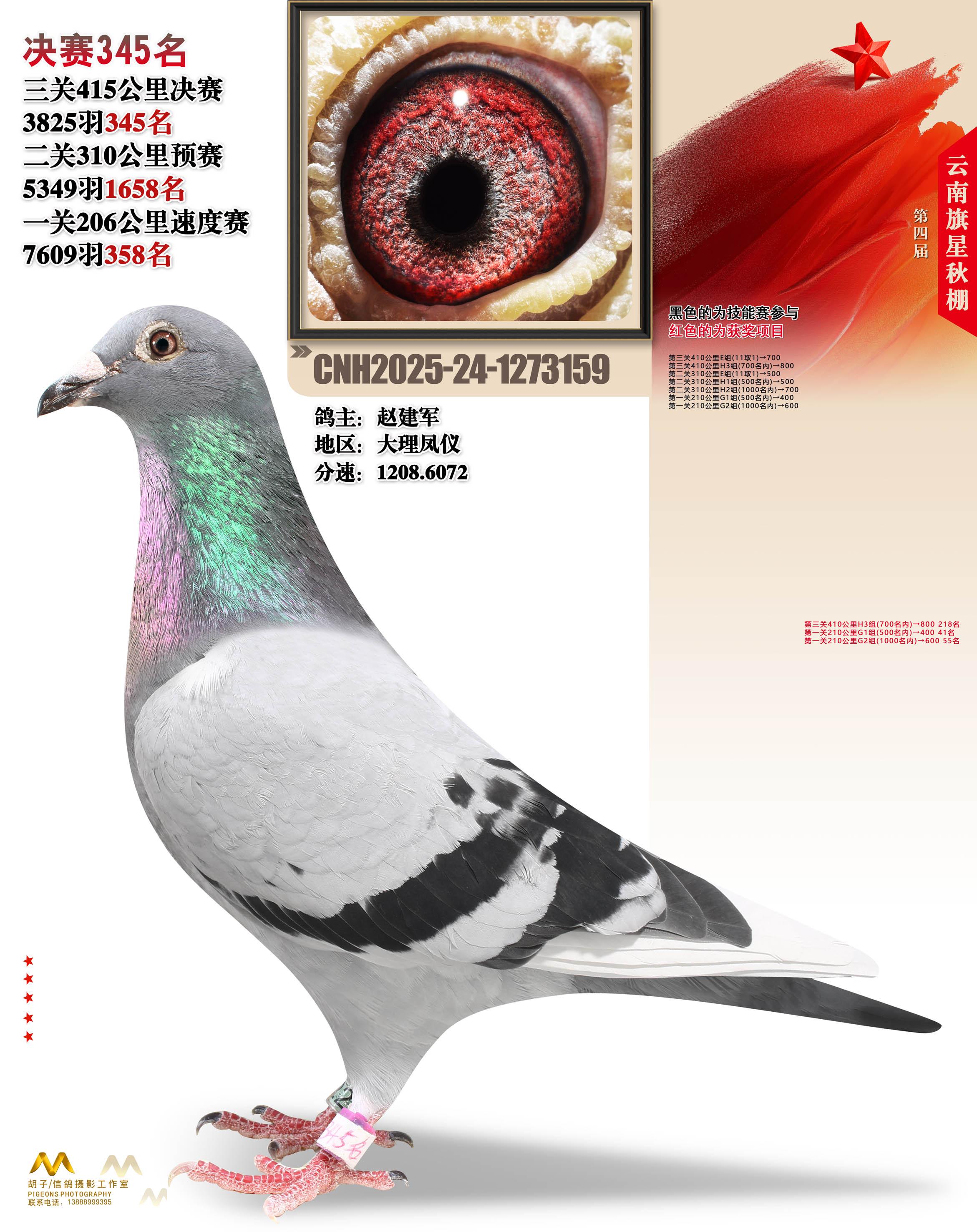 位置:云南大理旗星赛鸽中心2025获奖鸽展示\决赛345名