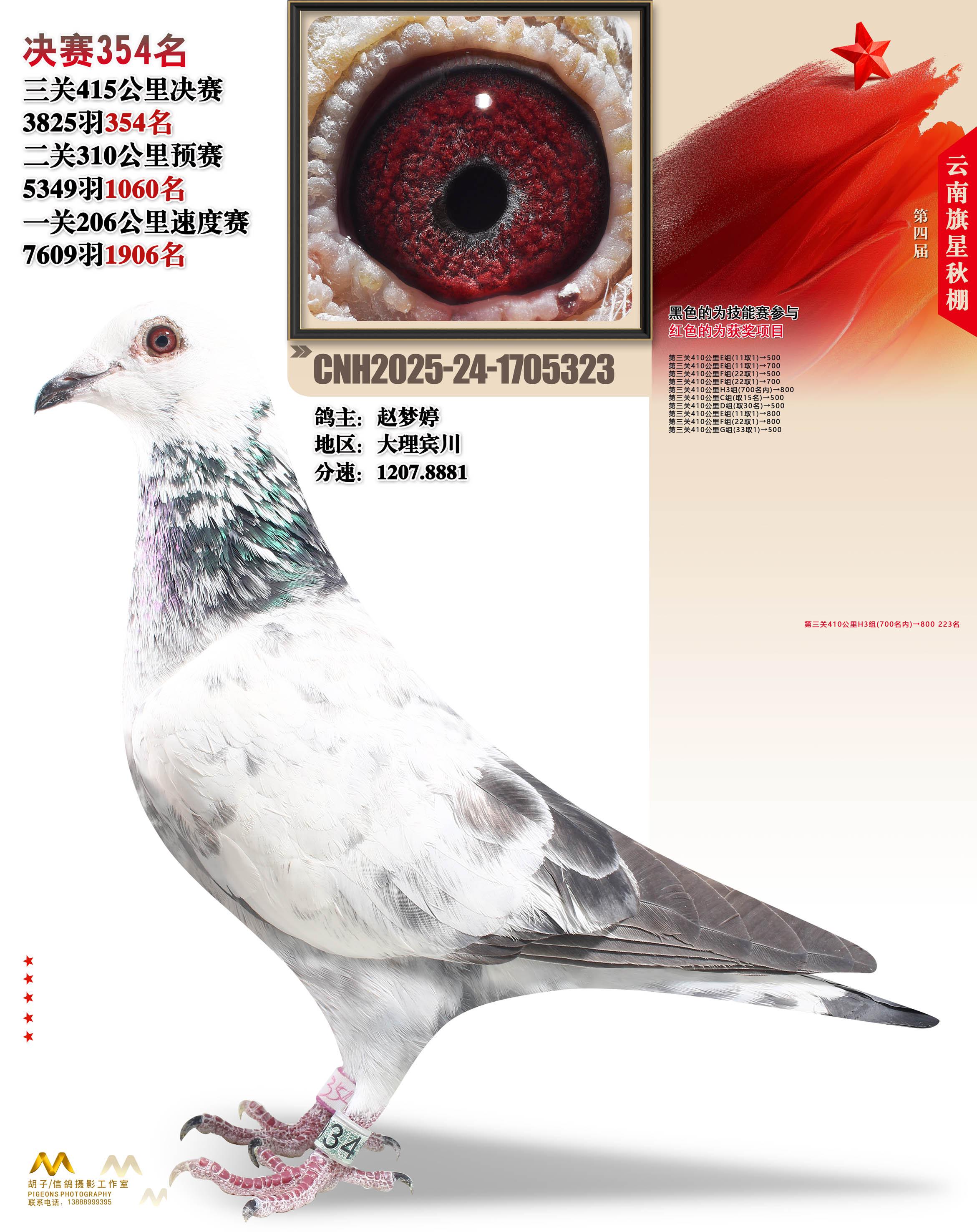 位置:云南大理旗星赛鸽中心2025获奖鸽展示\决赛354名