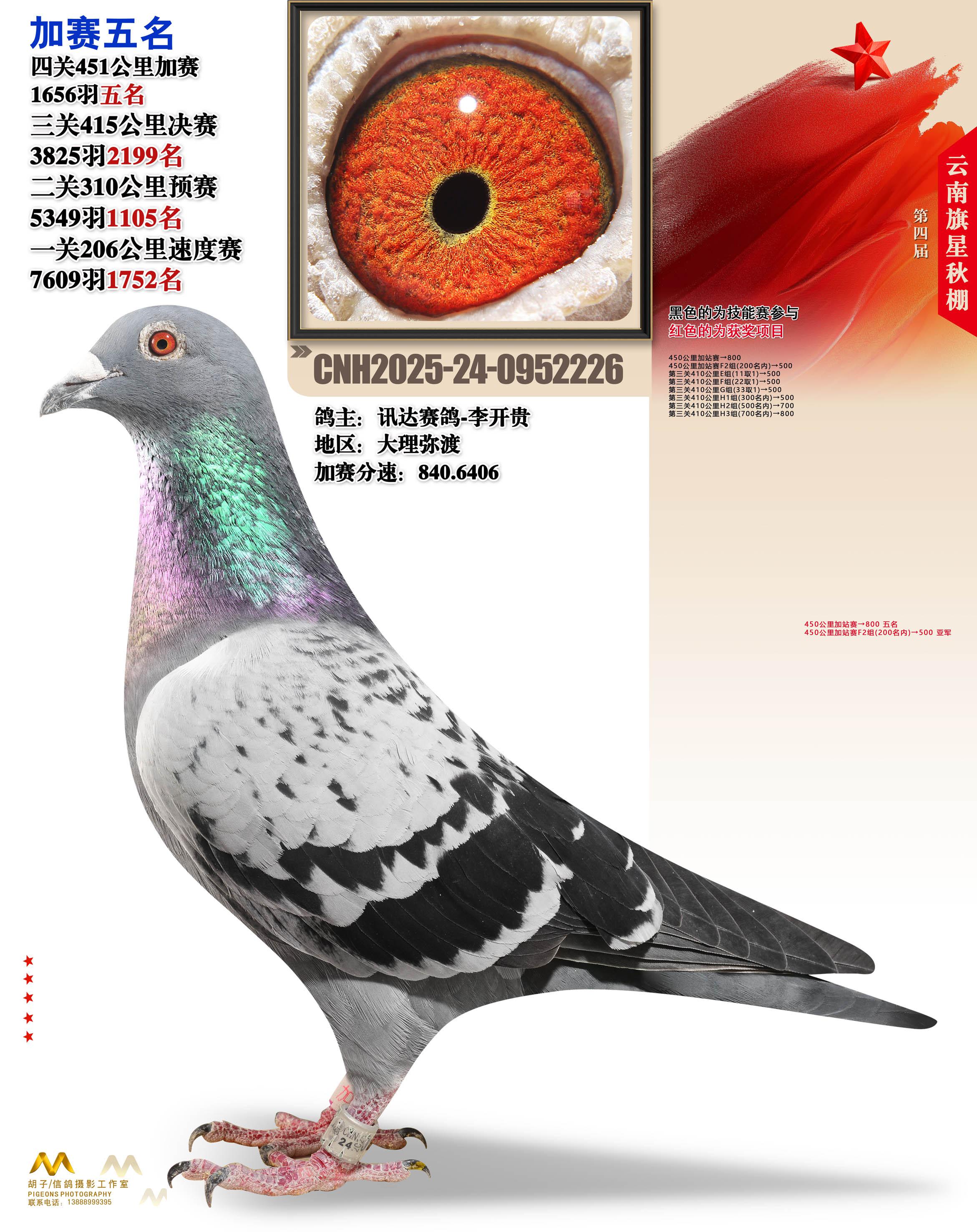 位置:云南大理旗星赛鸽中心2025获奖鸽展示\加站赛5名