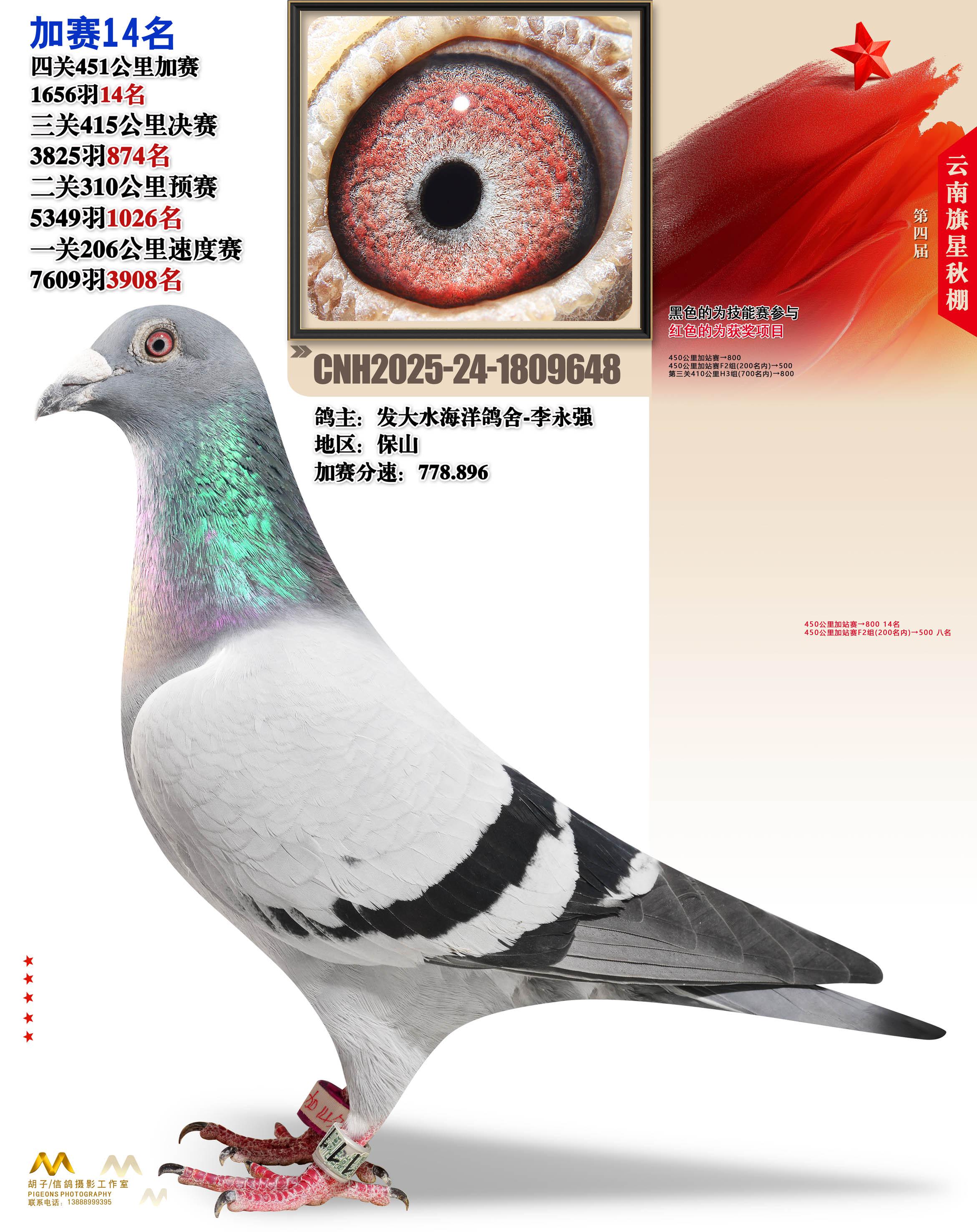 位置:云南大理旗星赛鸽中心2025获奖鸽展示\加站赛14名
