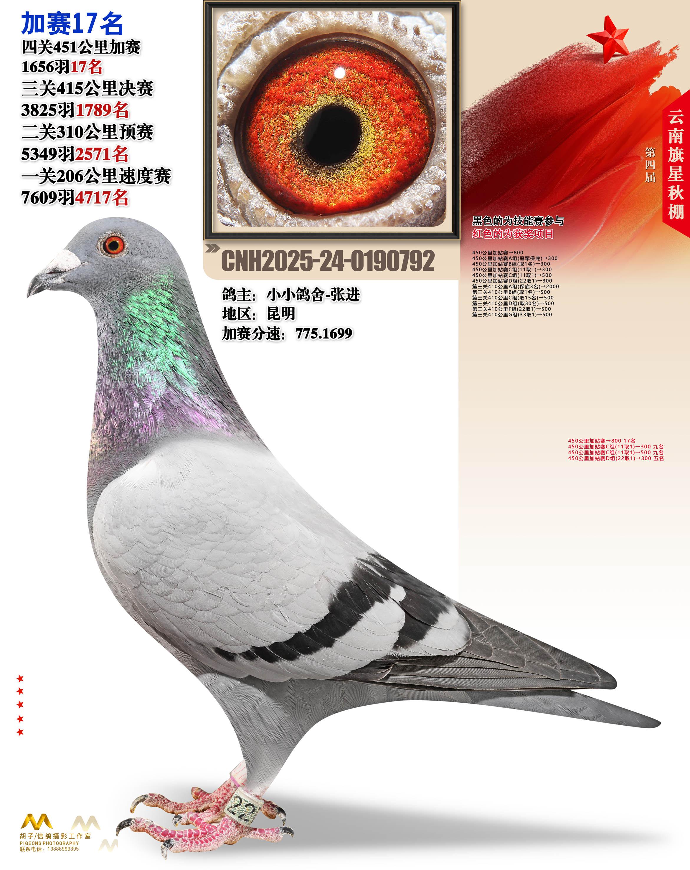 位置:云南大理旗星赛鸽中心2025获奖鸽展示\加站赛17名