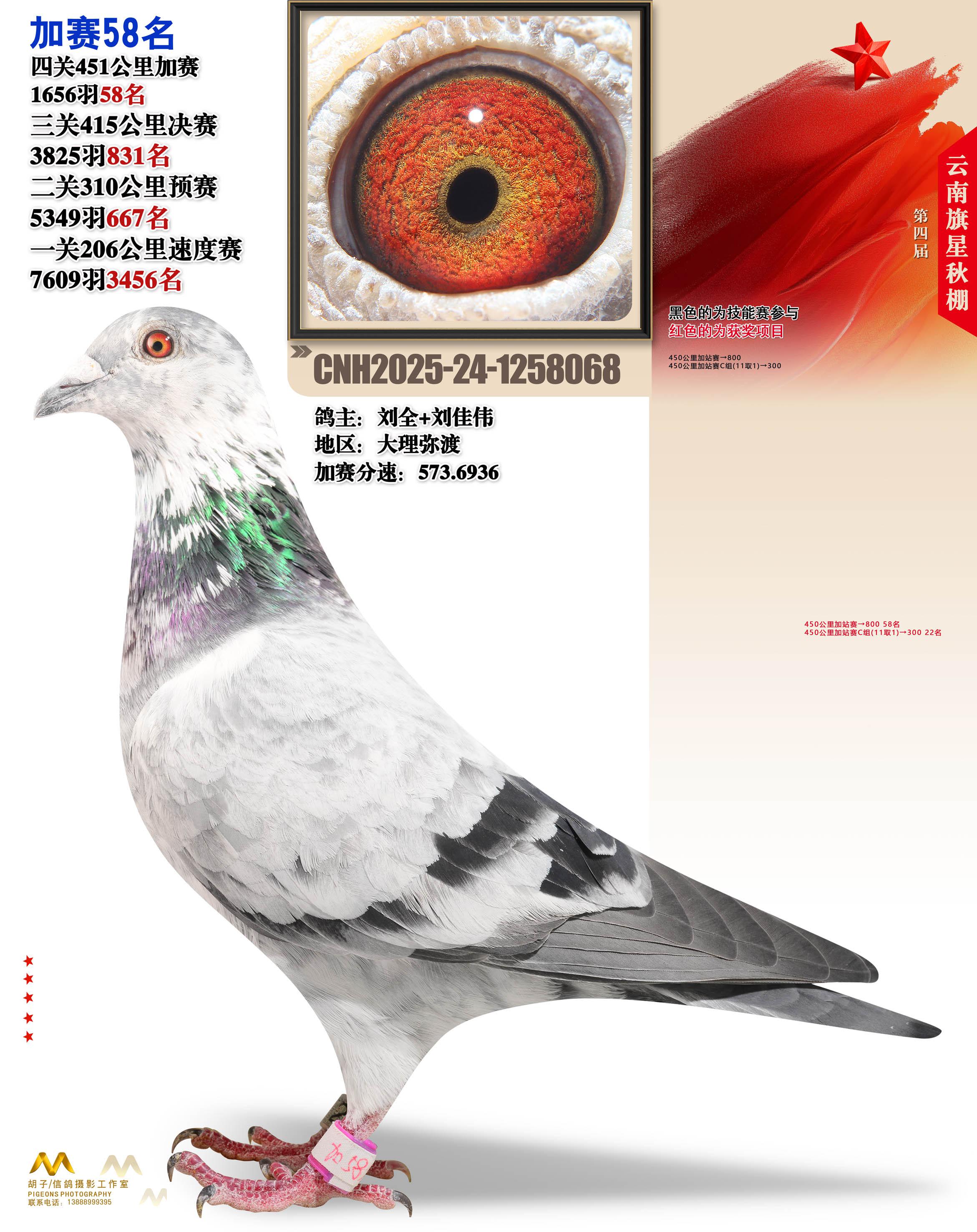 位置:云南大理旗星赛鸽中心2025获奖鸽展示\加站赛58名