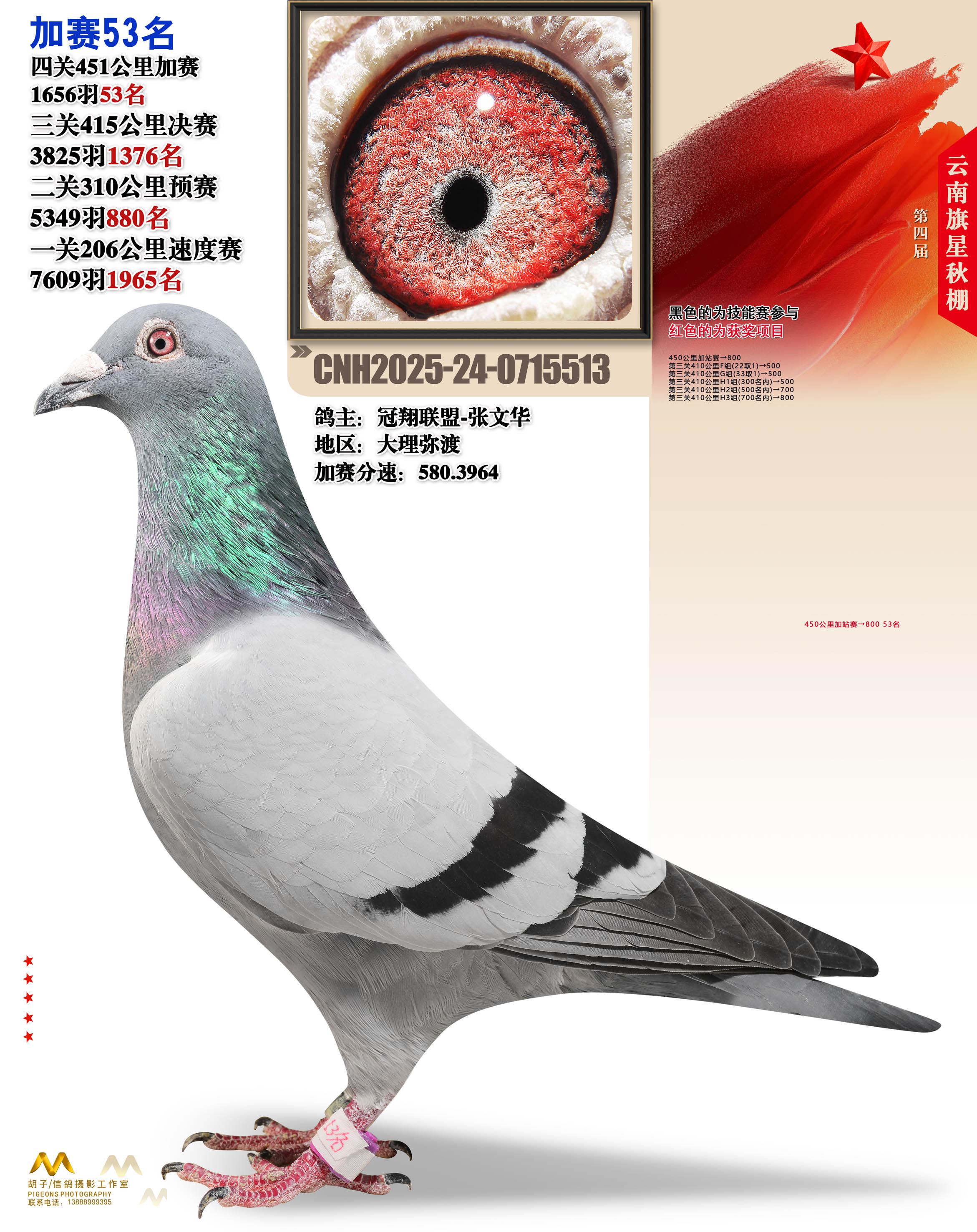 位置:云南大理旗星赛鸽中心2025获奖鸽展示\加站赛53名