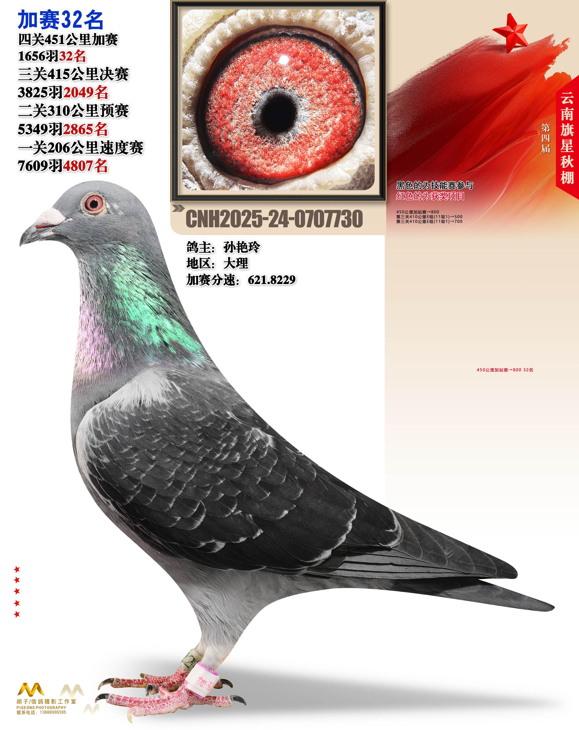 位置:云南大理旗星赛鸽中心2025获奖鸽展示\加站赛32名