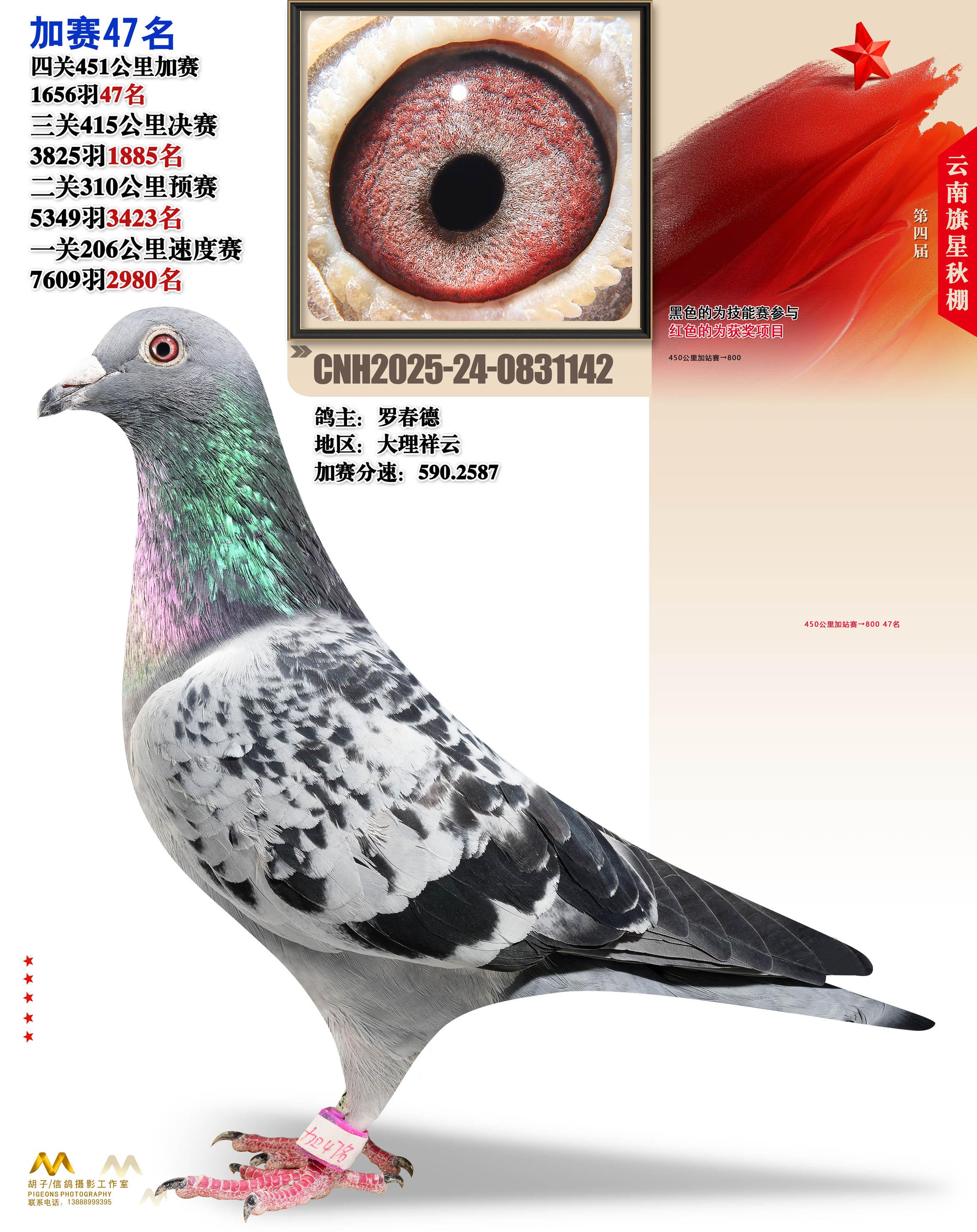 位置:云南大理旗星赛鸽中心2025获奖鸽展示\加站赛47名