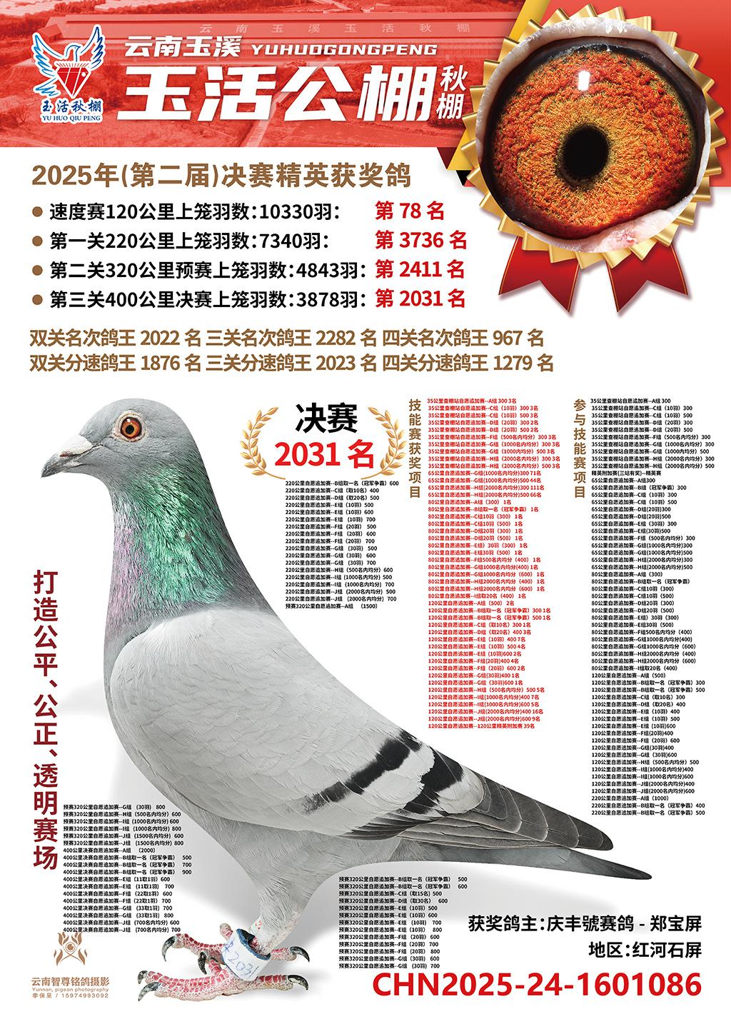 位置:云南玉活公棚秋棚2025获奖鸽展示\决赛2031名