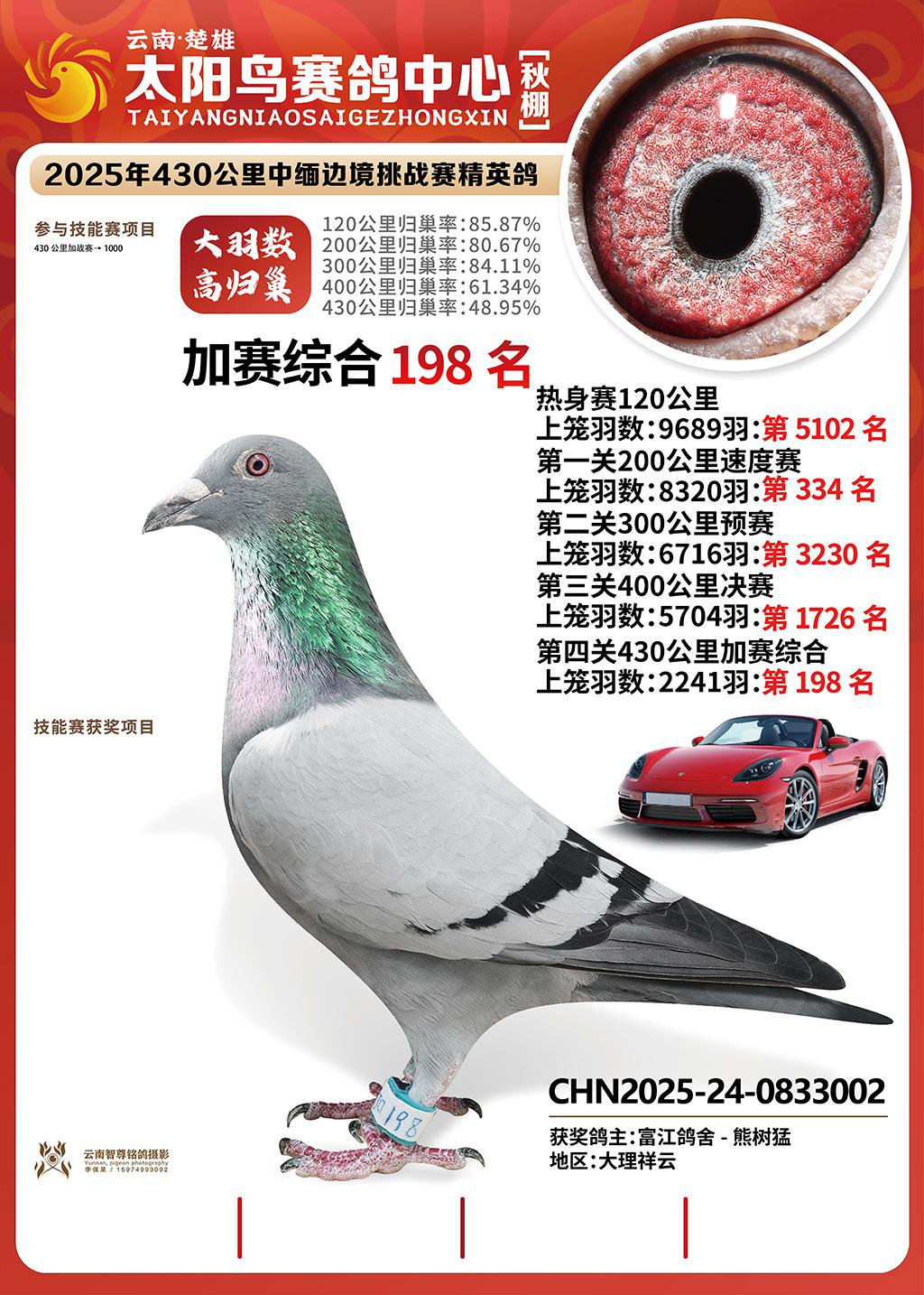 位置:云南太阳鸟赛鸽中心2025获奖鸽展示\综合198名
