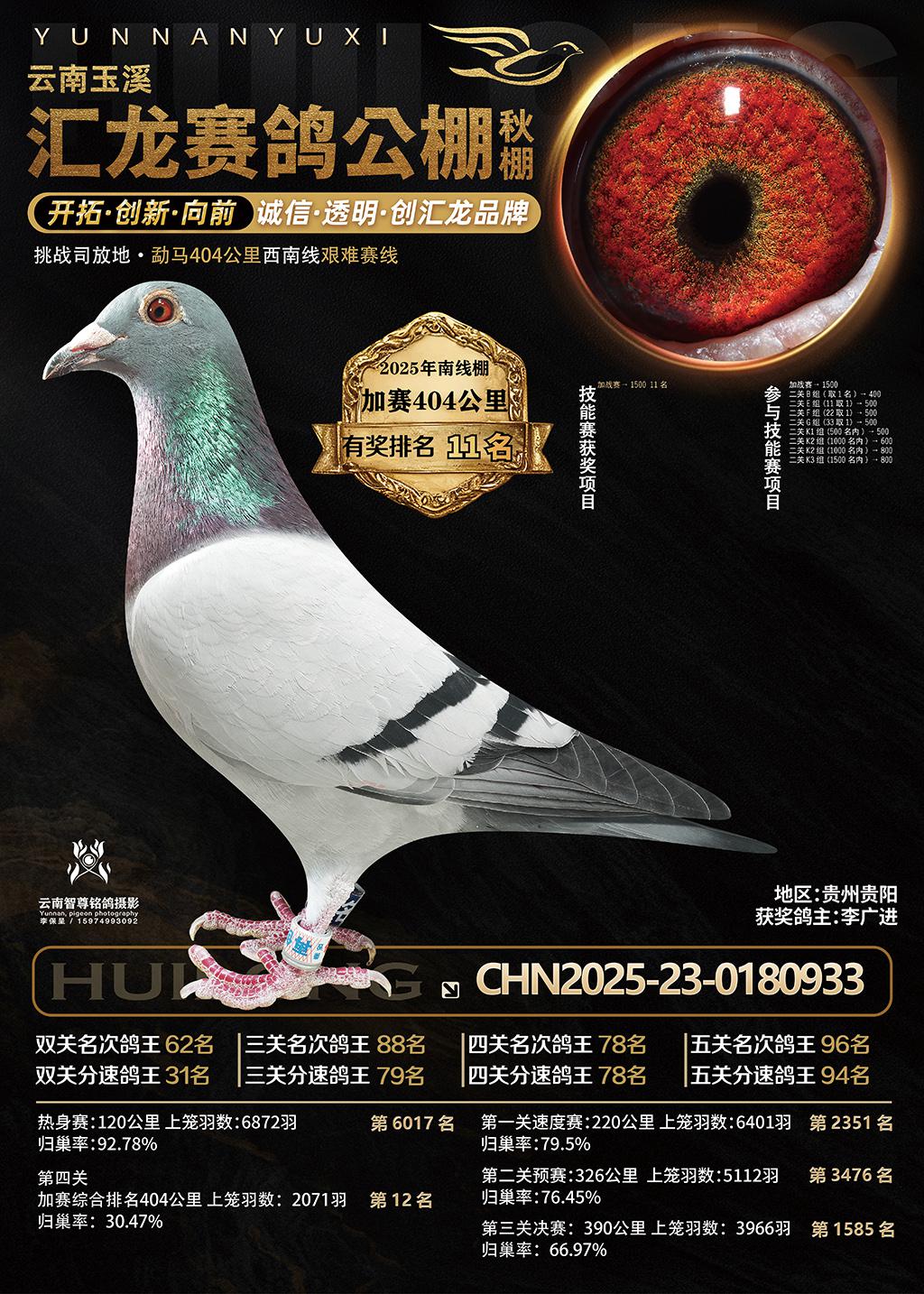 位置:云南玉溪汇龙赛鸽公棚2025获奖鸽展示\加赛11名