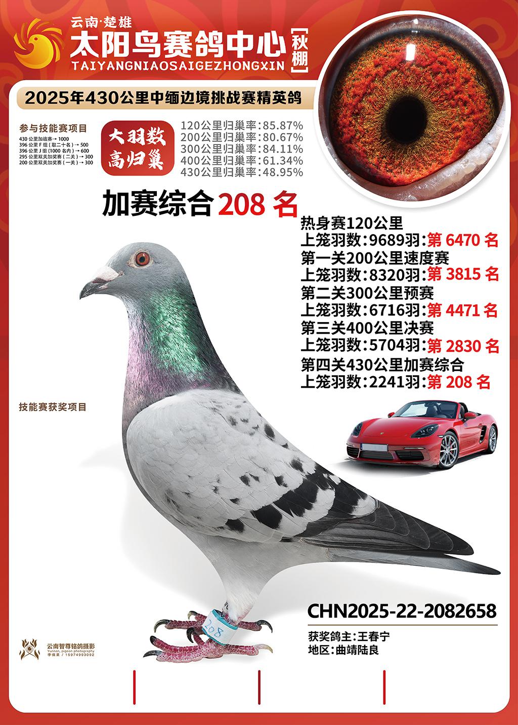 位置:云南太阳鸟赛鸽中心2025获奖鸽展示\综合208名