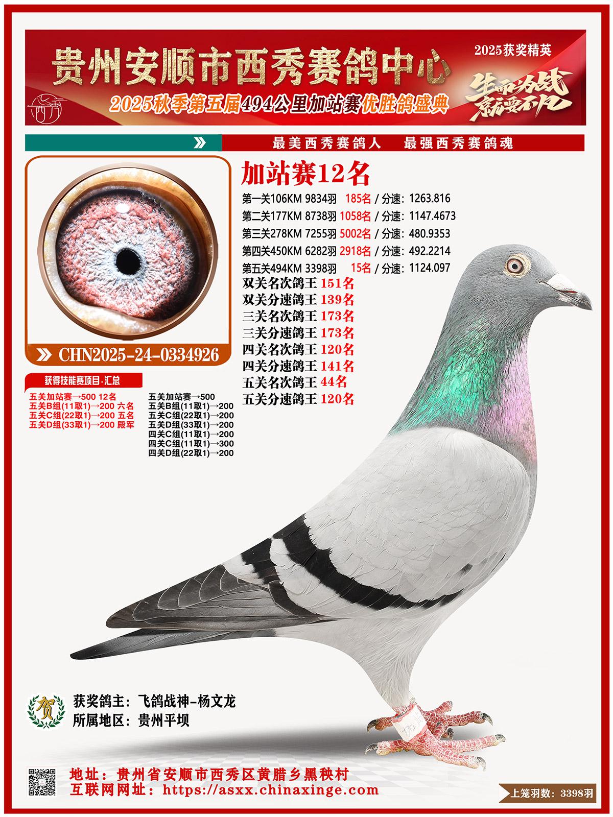位置:安顺市西秀赛鸽中心2025获奖鸽展示\加站赛12名