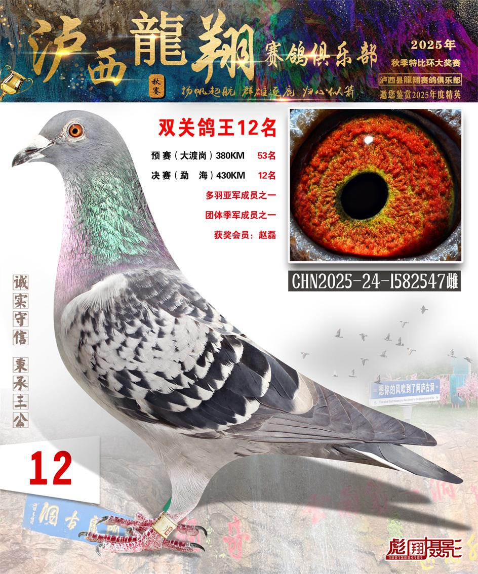 位置:泸西县龍翔赛鸽俱乐部2025获奖鸽展示\12名