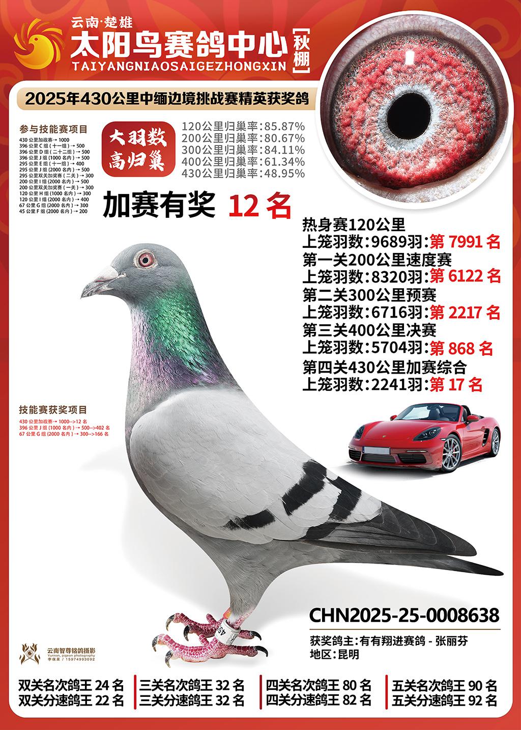 位置:云南太阳鸟赛鸽中心2025获奖鸽展示\加赛12名