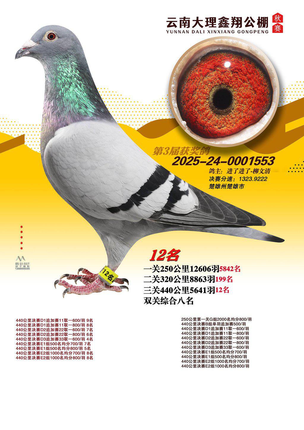 位置:云南大理鑫翔公棚2025获奖鸽展示\12名