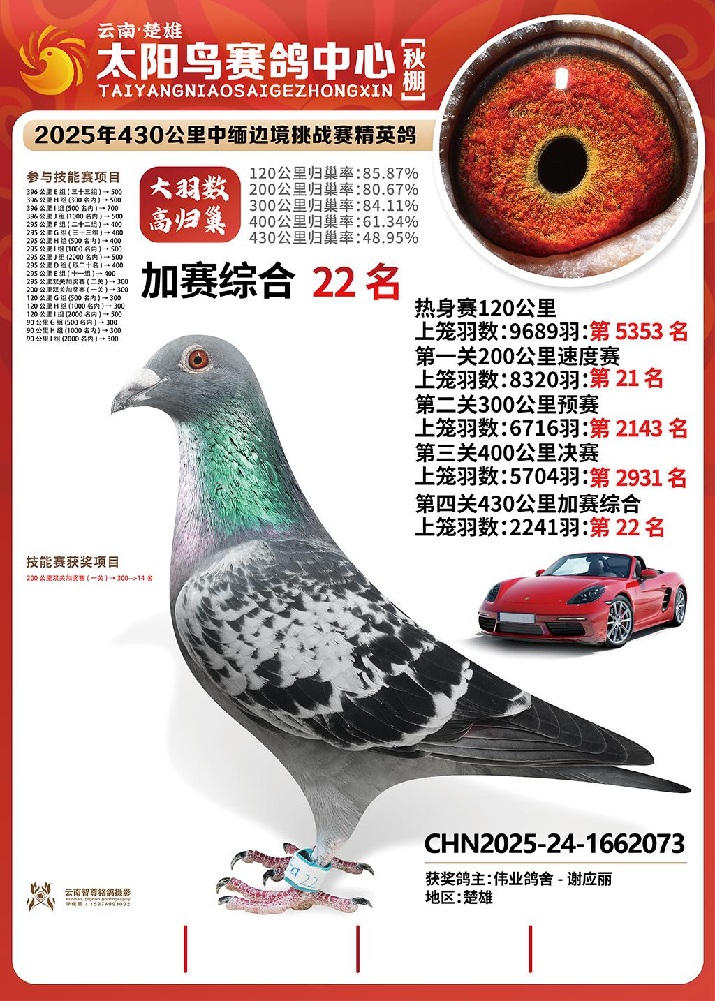 位置:云南太阳鸟赛鸽中心2025获奖鸽展示\综合22名