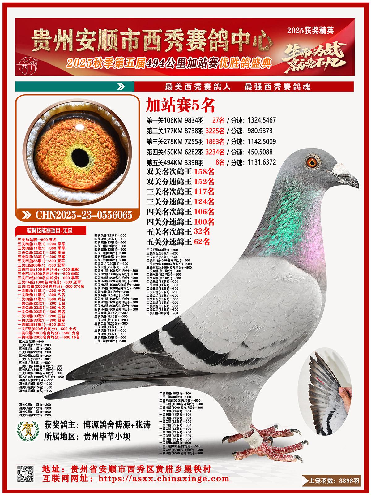 位置:安顺市西秀赛鸽中心2025获奖鸽展示\加站赛5名