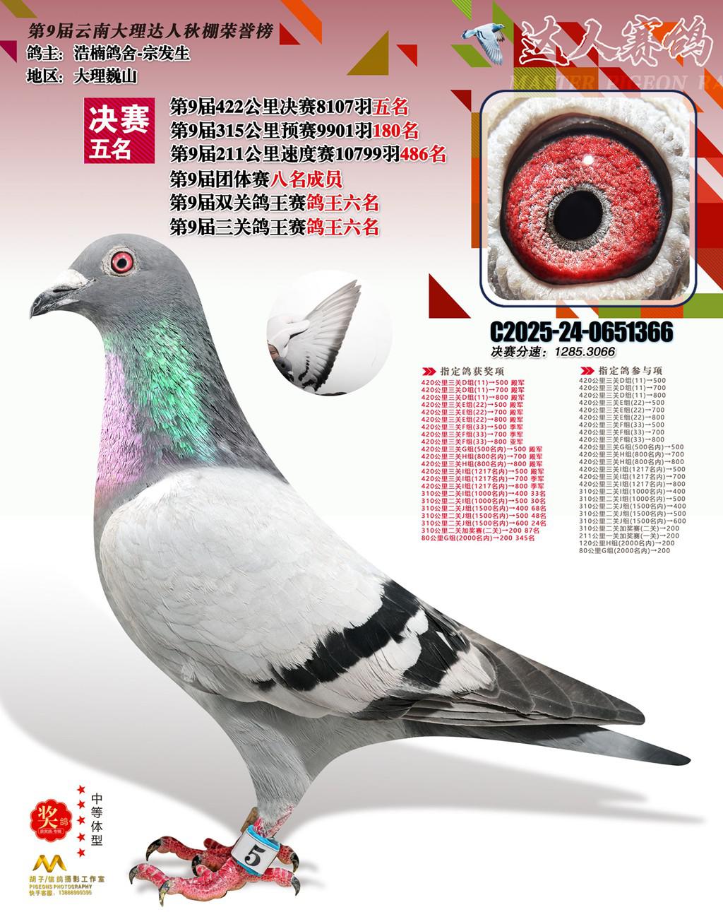 位置:云南大理巍山达人赛鸽中心2025获奖鸽展示\5名