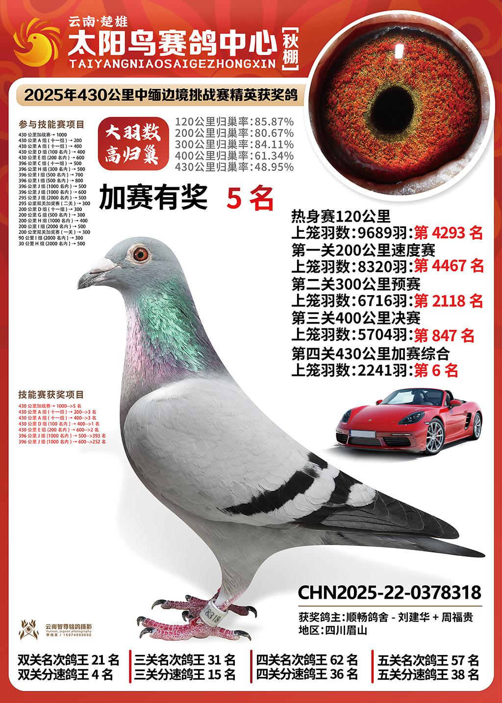 位置:云南太阳鸟赛鸽中心2025获奖鸽展示\加赛5名