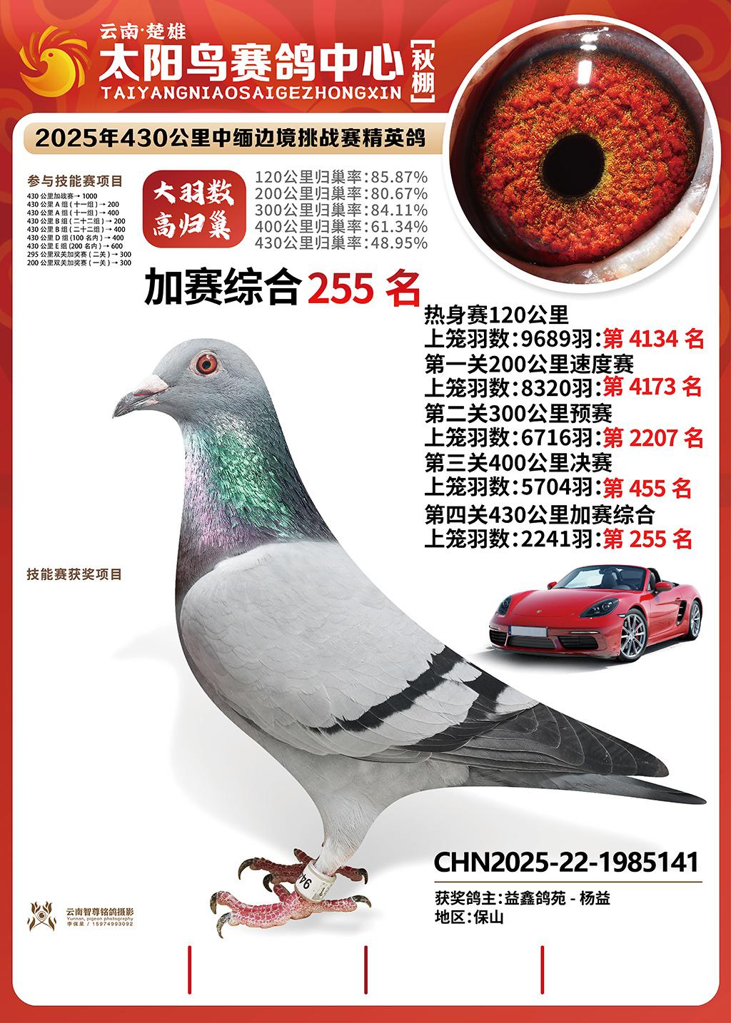 位置:云南太阳鸟赛鸽中心2025获奖鸽展示\加赛综合255名