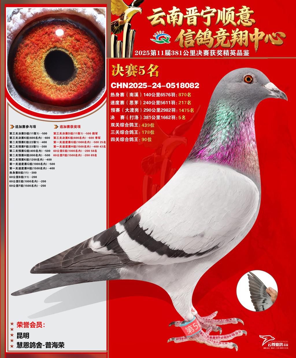 位置:云南晋宁顺意信鸽竞翔中心2025获奖鸽展示\决赛5名