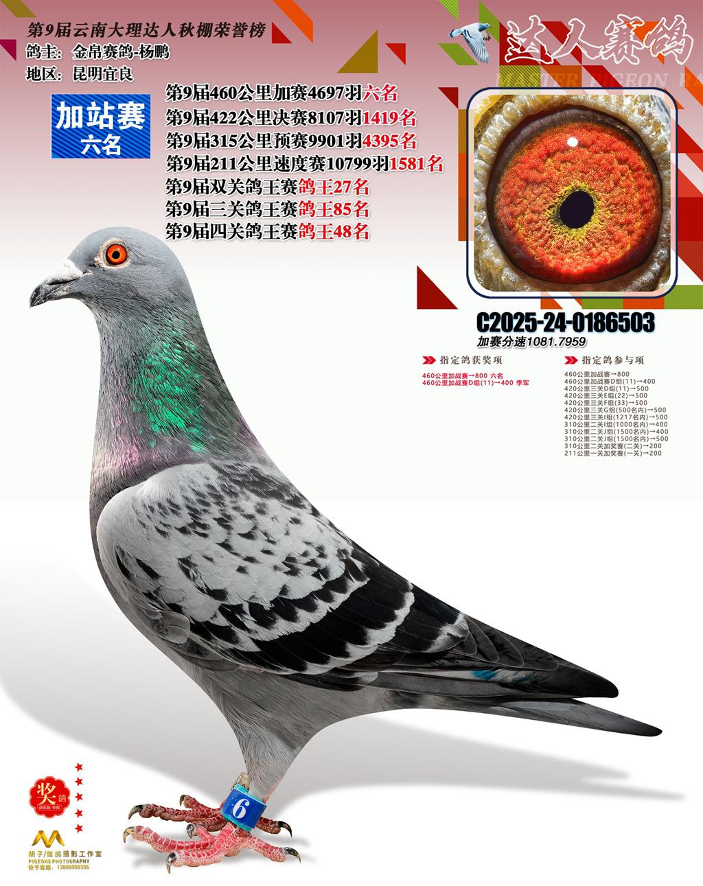 位置:云南大理巍山达人赛鸽中心2025获奖鸽展示\6名