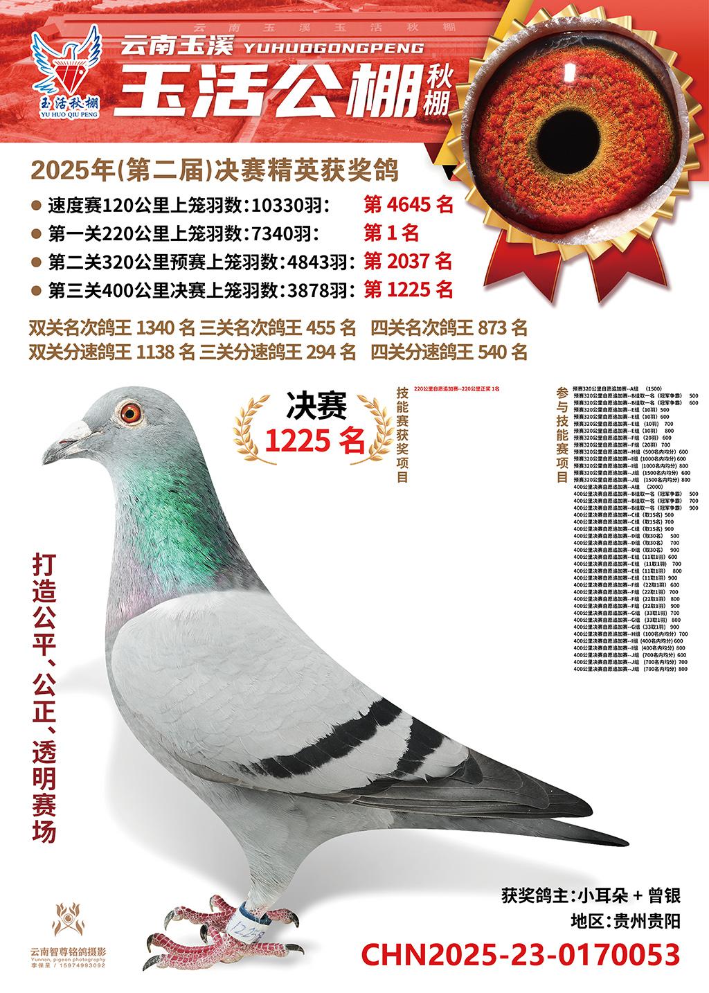 位置:云南玉活公棚秋棚2025获奖鸽展示\决赛1225名