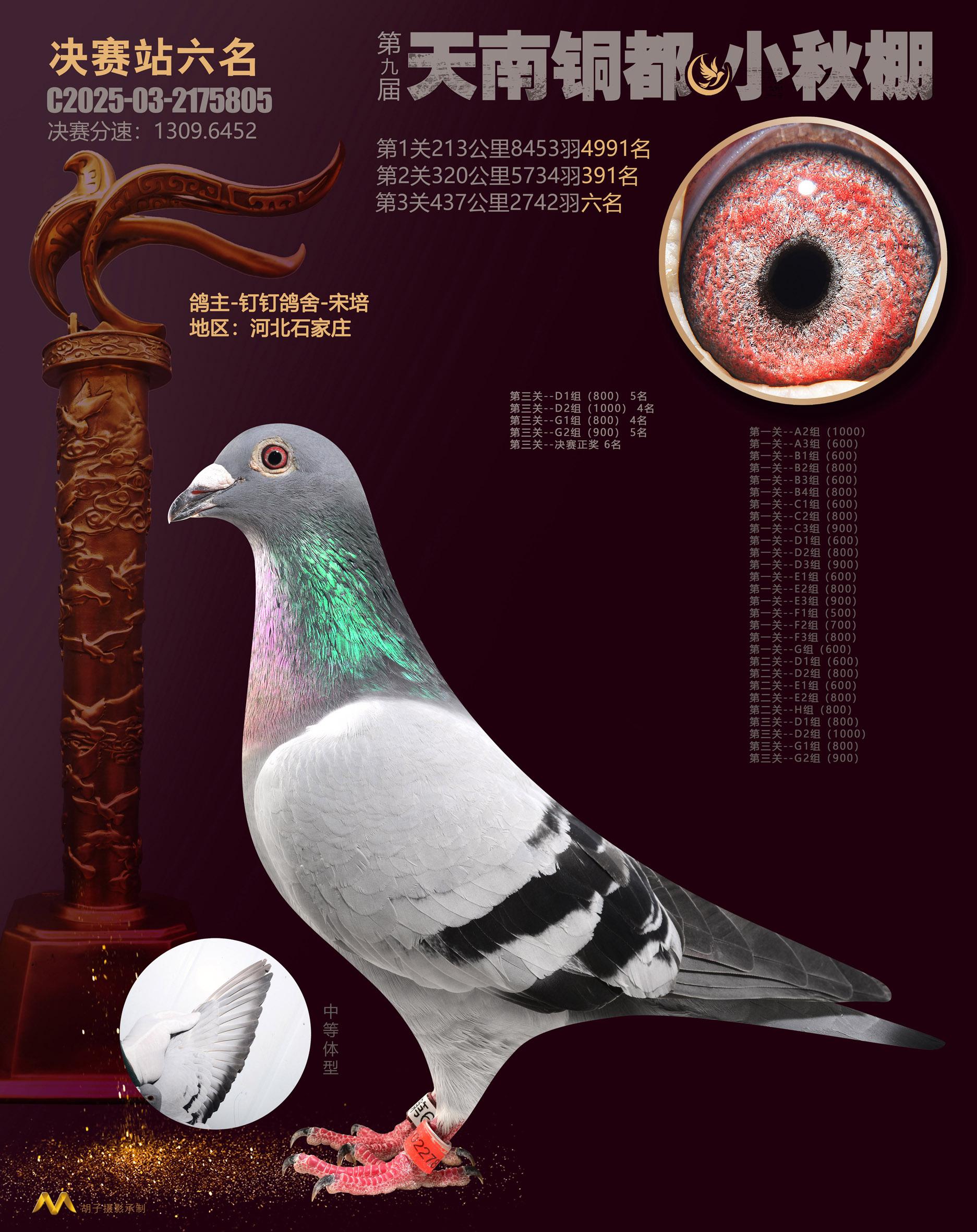 位置:云南天南铜都小棚(小秋棚)2025获奖鸽展示\决赛站6名