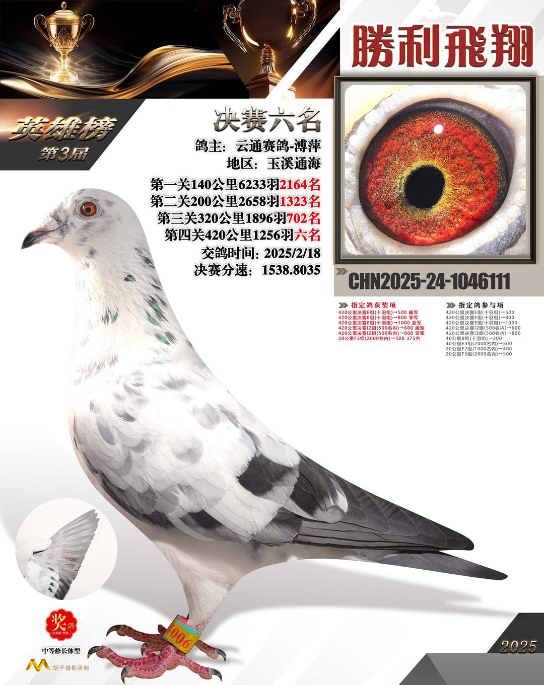 位置:云南宜良勝利飞翔公棚2025获奖鸽展示\6