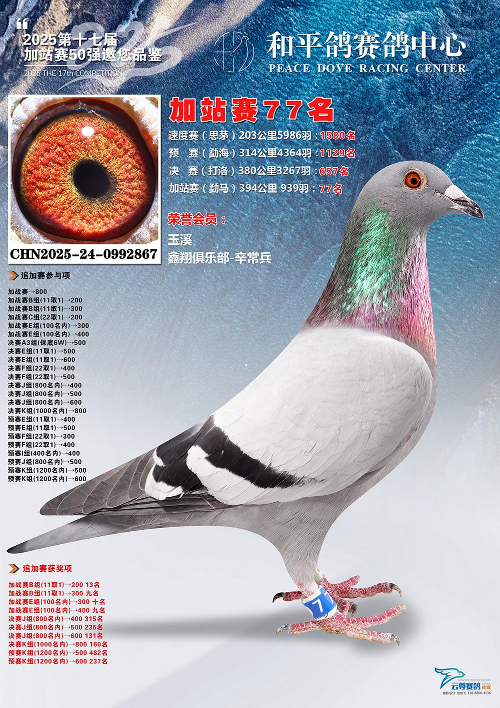 位置:云南玉溪和平鸽赛鸽公棚2025获奖鸽展示\77