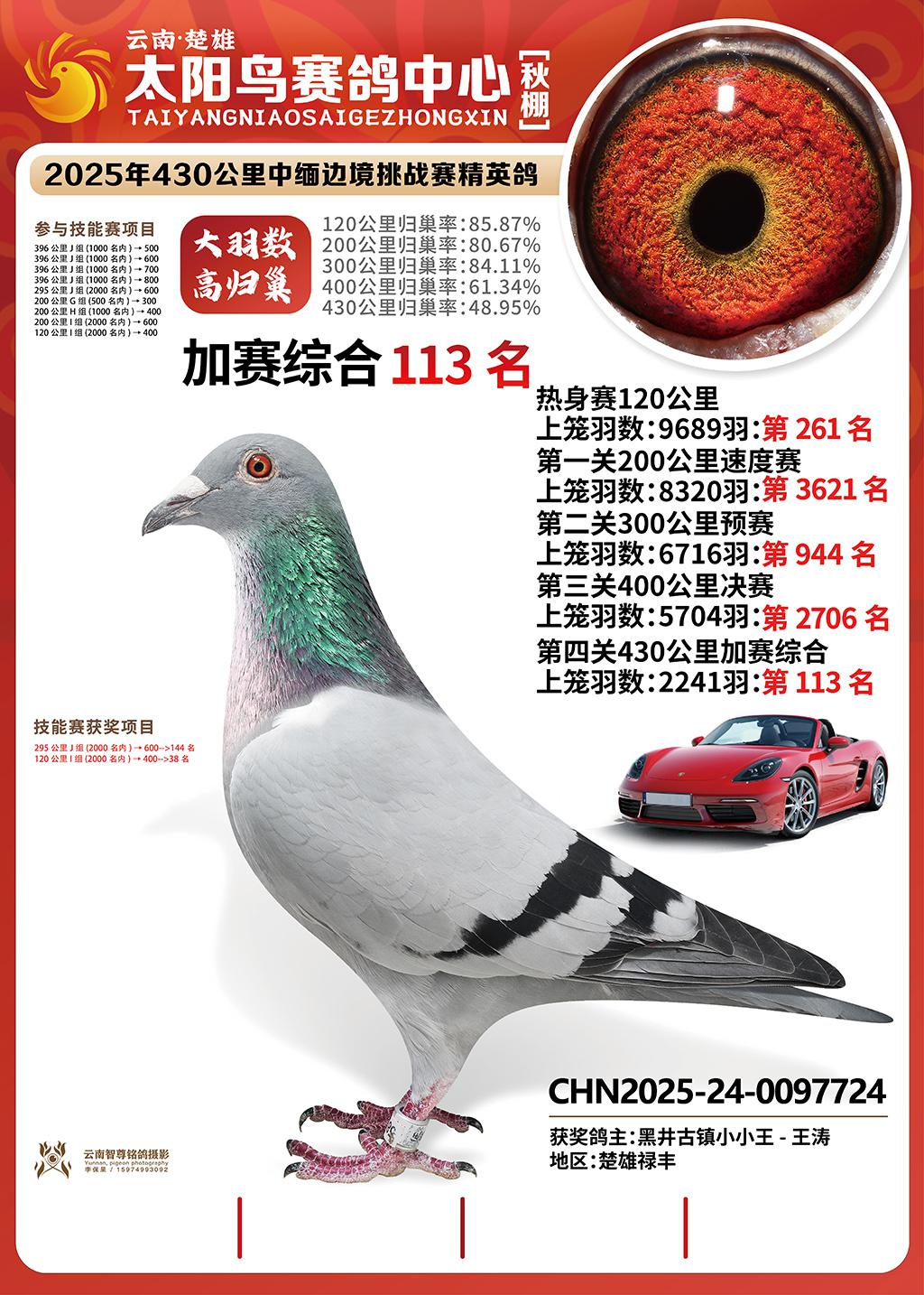 位置:云南太阳鸟赛鸽中心2025获奖鸽展示\综合113名