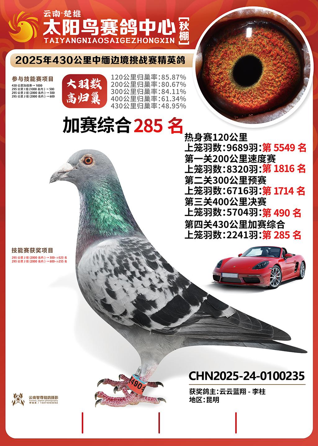 位置:云南太阳鸟赛鸽中心2025获奖鸽展示\加赛综合285名