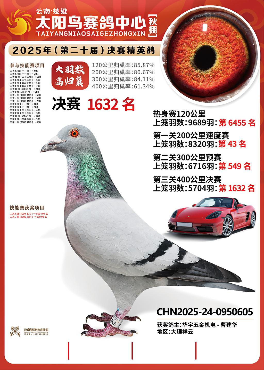 位置:云南太阳鸟赛鸽中心2025获奖鸽展示\决赛1632名