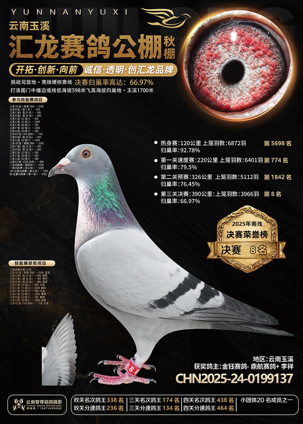 位置:云南玉溪汇龙赛鸽公棚2025获奖鸽展示\决赛8名
