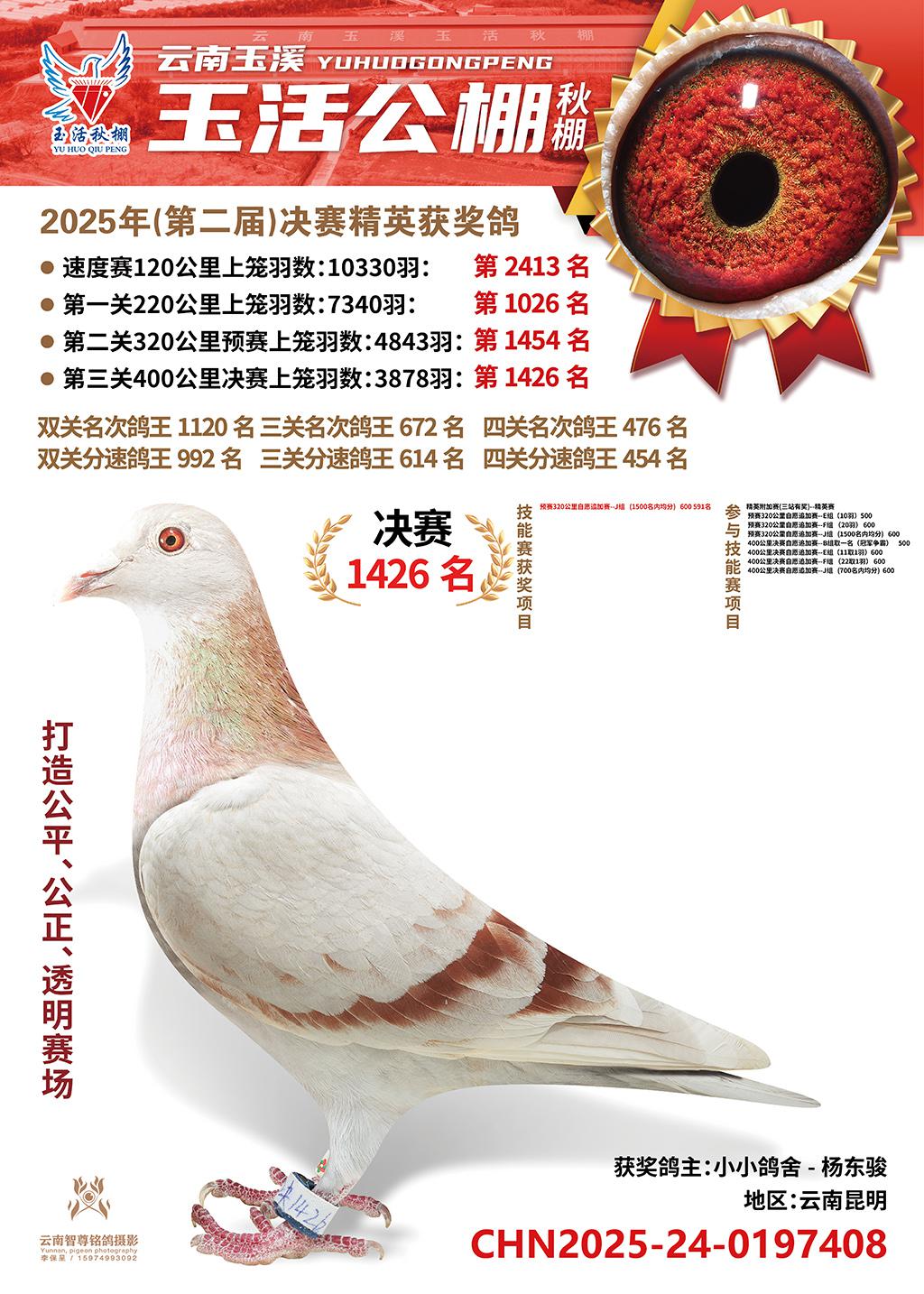 位置:云南玉活公棚秋棚2025获奖鸽展示\决赛1426名